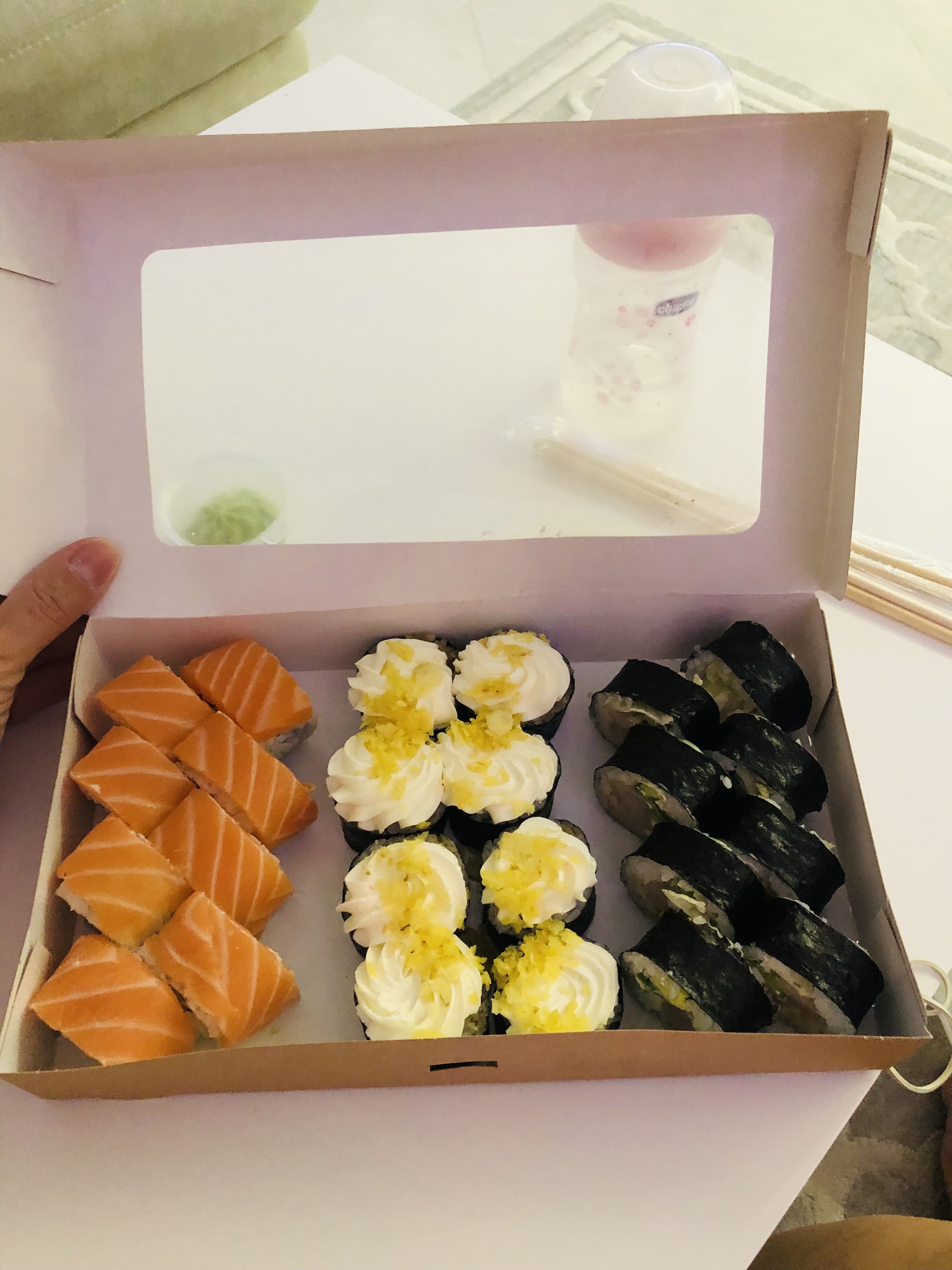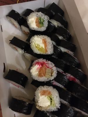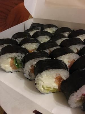Все очень вкусно (рыбы хватает роллы большие) ,а самое главное красиво , гарниры в подарок (кунжутным соус дозаказывали был соленый,но это не как не может повлиять на оценку )доставили вовремя ,спасибо ,рекомендую.Чуть не забыла ,спасибо за подарочек