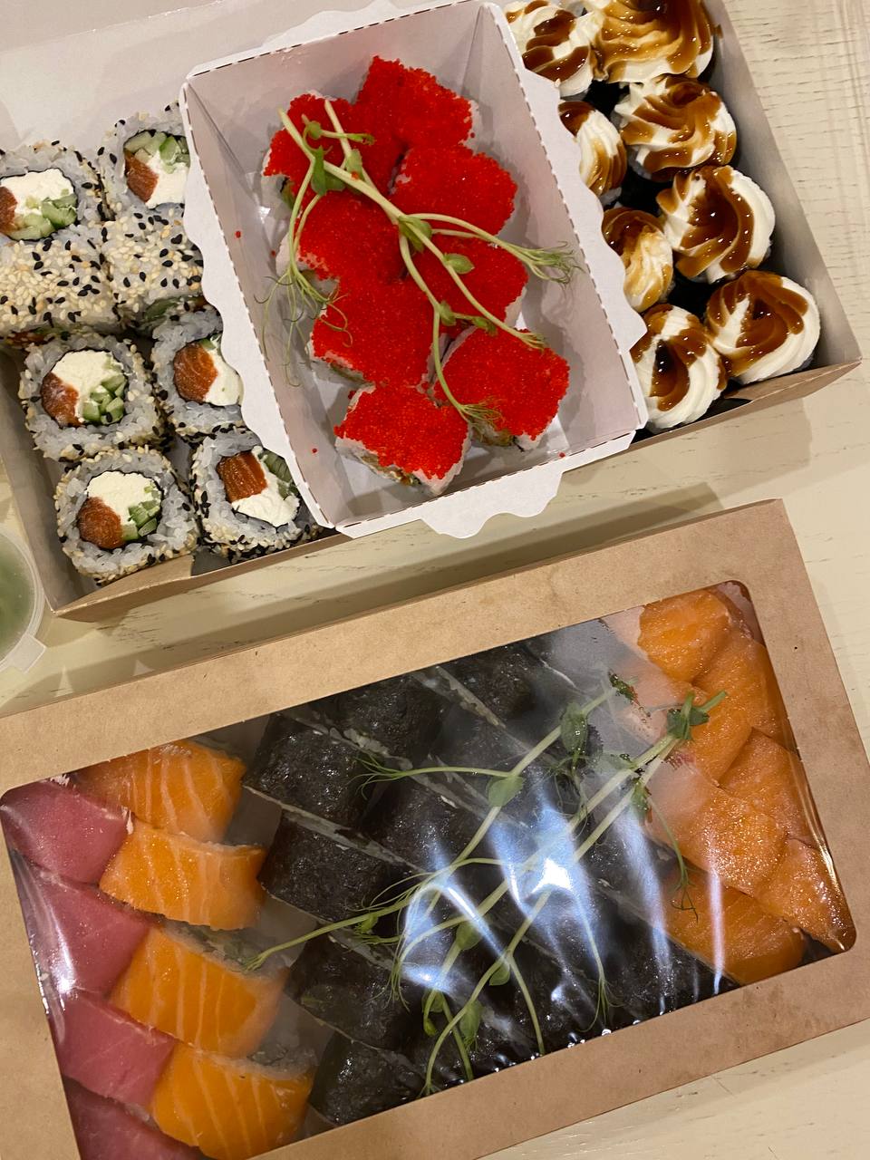 Заказали вчера номер 1 и вторым сетом 3. Суши хорошие, свежие и вкусные. Так же очень сытные) Спасибо за вашу работу! 🌹