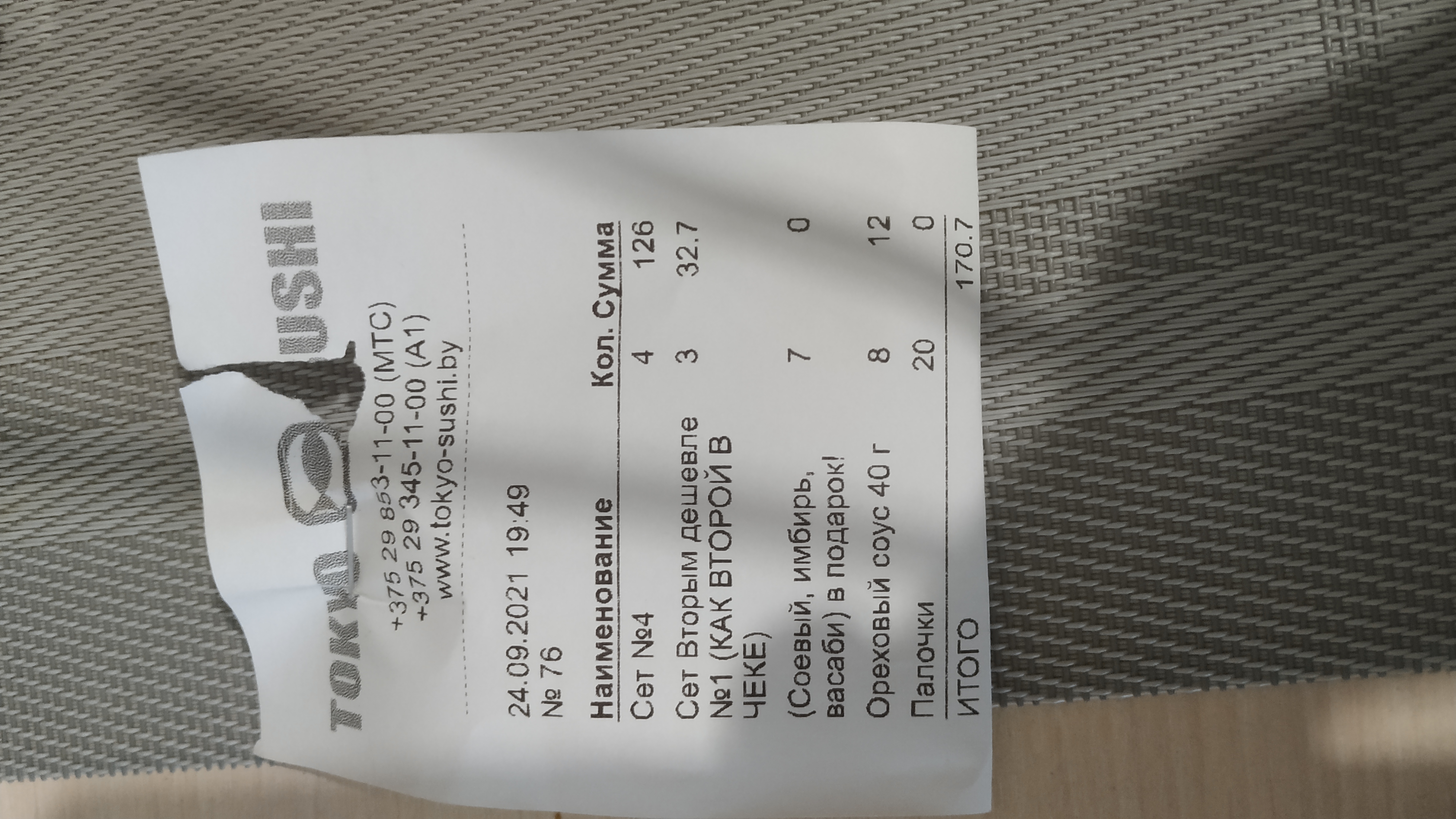 - Промокод дает право на скидку до 64% на суши-сеты от "TOKYO SUSHI"