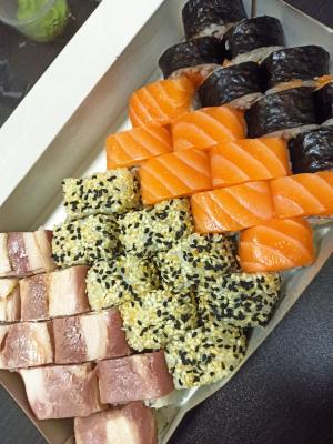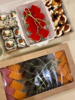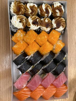 Добрый день, всем кто радует нас-потребителей, таким качественным продуктом и сервисом. Заказывала сэт №11, заявку оформила онлайн, оставила все данные и вот настал, тот момент, когда этот шедевр, оказался в нужное время, в назначенном месте! Честно, все остались довольны: суши свежие, рис нужной консистенции, авокадо таяло во рту, рыбка сказка. Приятно удивил бонус- порция Филадельфии!!! Рекомендую всем, кто еще в поиске, компания порядочная и достойна адекватных потребителей!!! Спасибо, желаю постоянного дохода и крепкого здоровья!