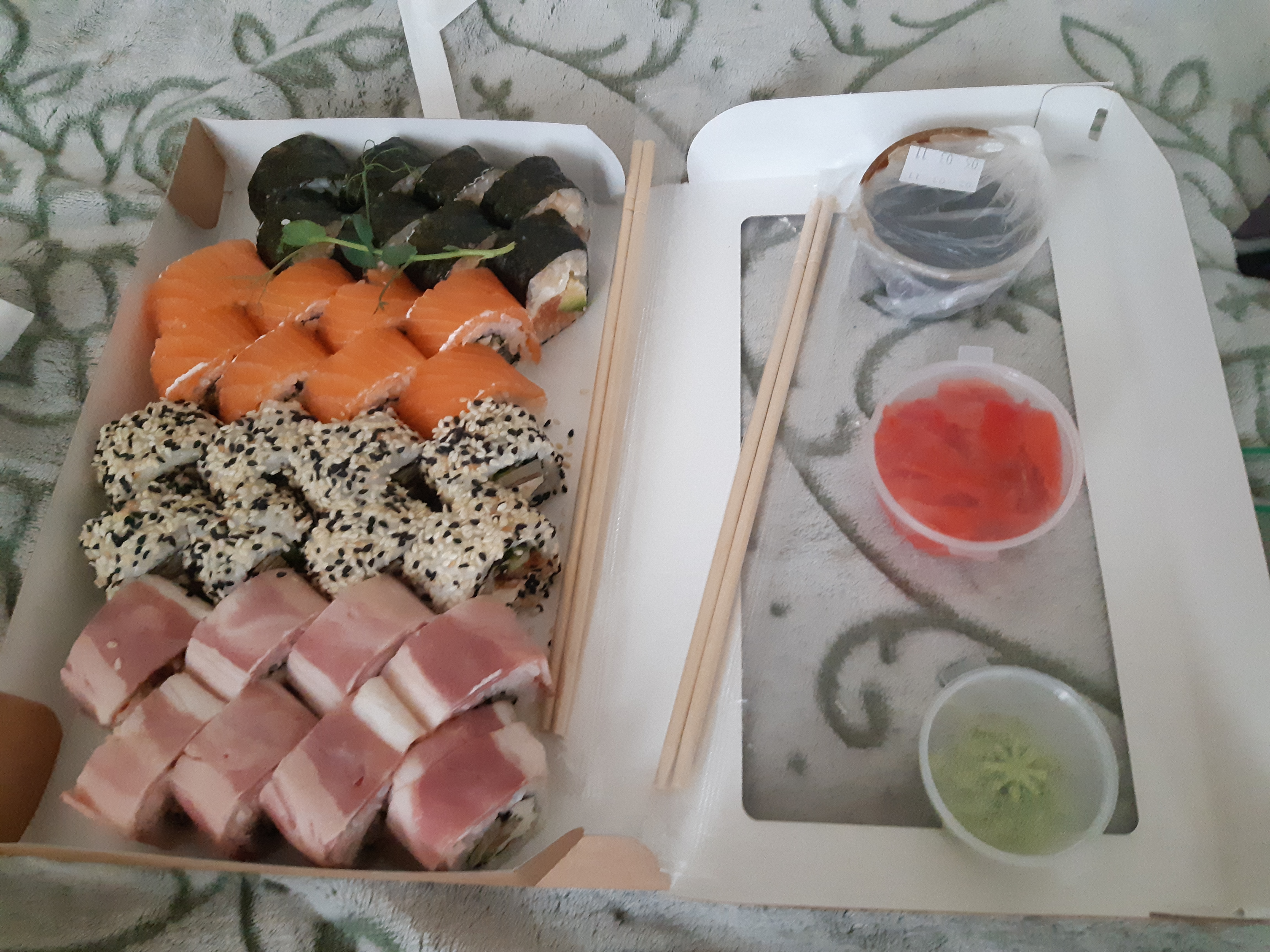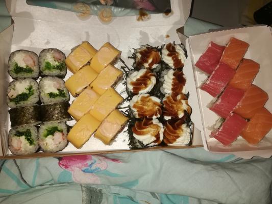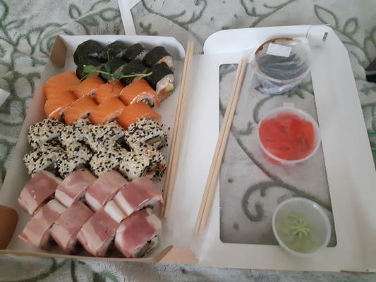 Спасибо за суши. Вкусные, свежие, хорошая начитка. Порадовало наличие гарнира. Доставка, как и обещали, в течение часа. Брала сет 3. Рекомендую.