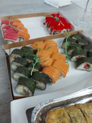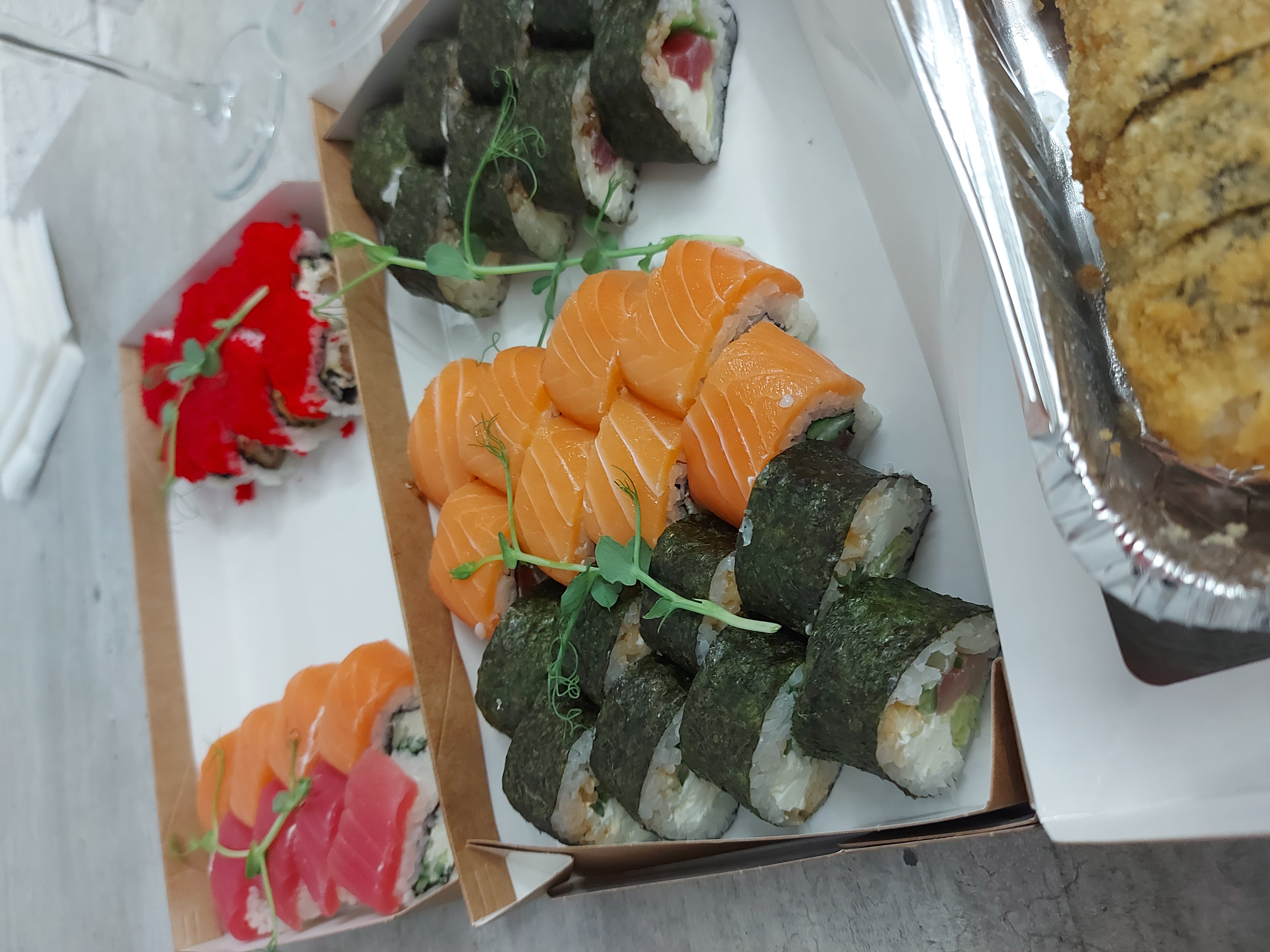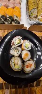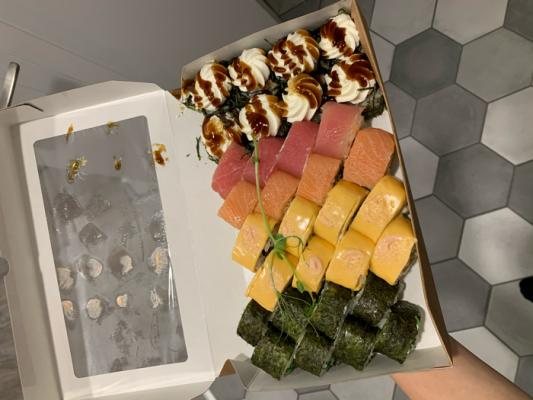 Единственный наверное минусик-это не совсем идеально скрученные роллы, которые нори наружу, пару штук немного разваливались, но на общее впечатление и оценку это никак не повлияло) успехов ребятам и держать и дальше марку)