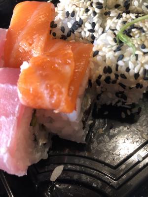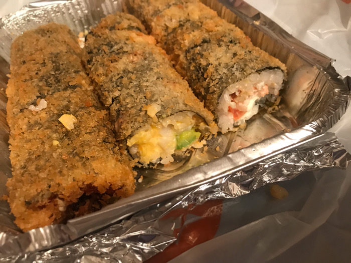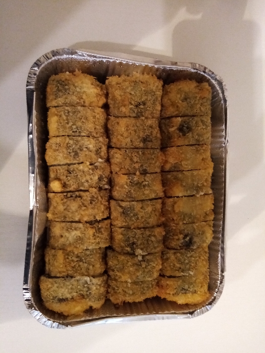 - В теплых ролла крайние кусочки отдаются запечатанными, так как большинству нравится дополнительная панировка на роллах!
