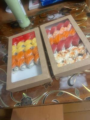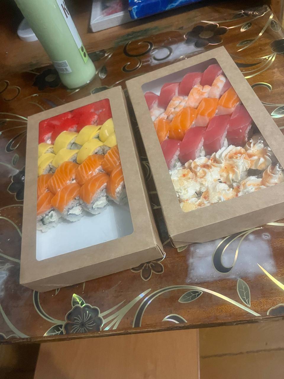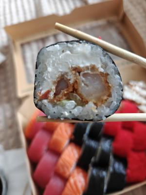 - В теплых ролла крайние кусочки отдаются запечатанными, так как большинству нравится дополнительная панировка на роллах!
