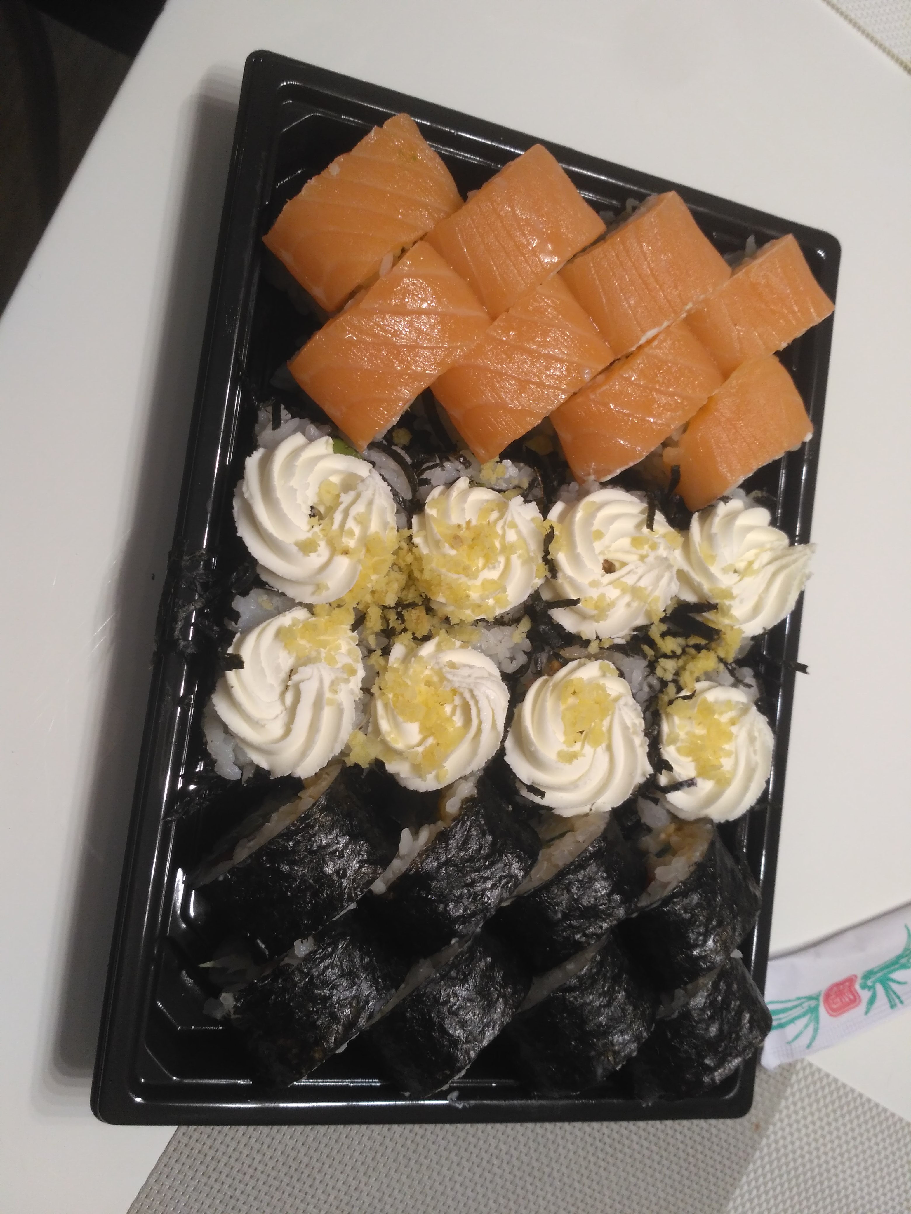 - В теплых ролла крайние кусочки отдаются запечатанными, так как большинству нравится дополнительная панировка на роллах!