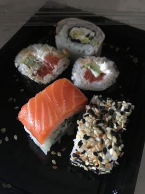 - В теплых ролла крайние кусочки отдаются запечатанными, так как большинству нравится дополнительная панировка на роллах!