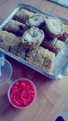- В теплых ролла крайние кусочки отдаются запечатанными, так как большинству нравится дополнительная панировка на роллах!