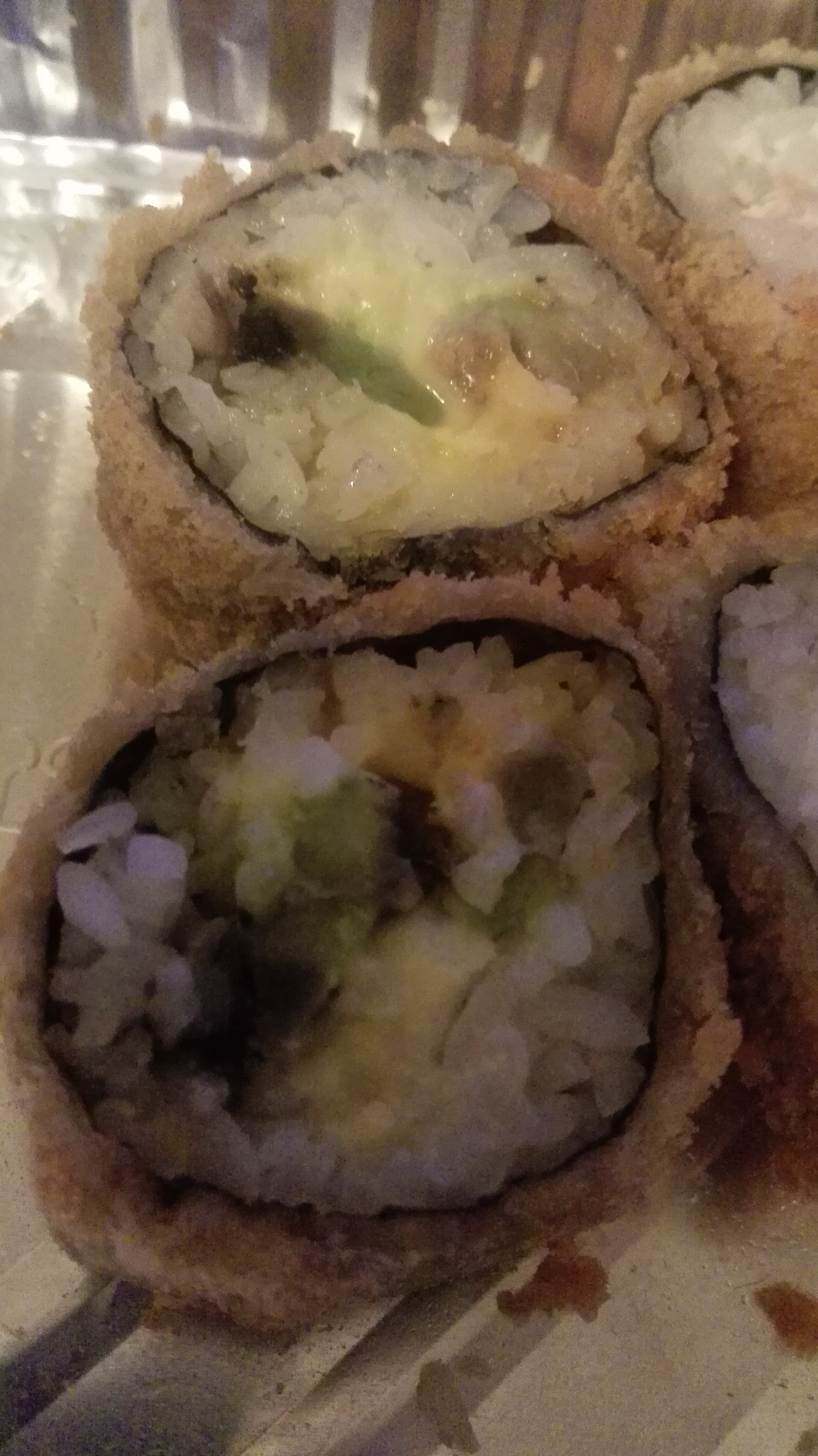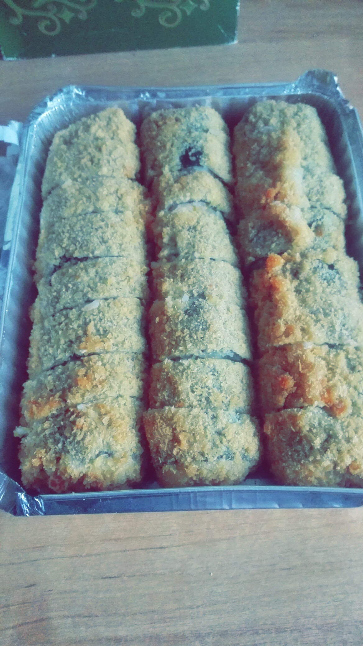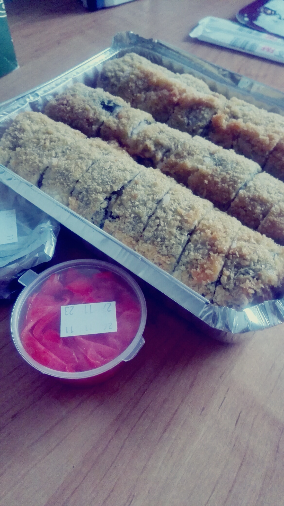 - В теплых ролла крайние кусочки отдаются запечатанными, так как большинству нравится дополнительная панировка на роллах!