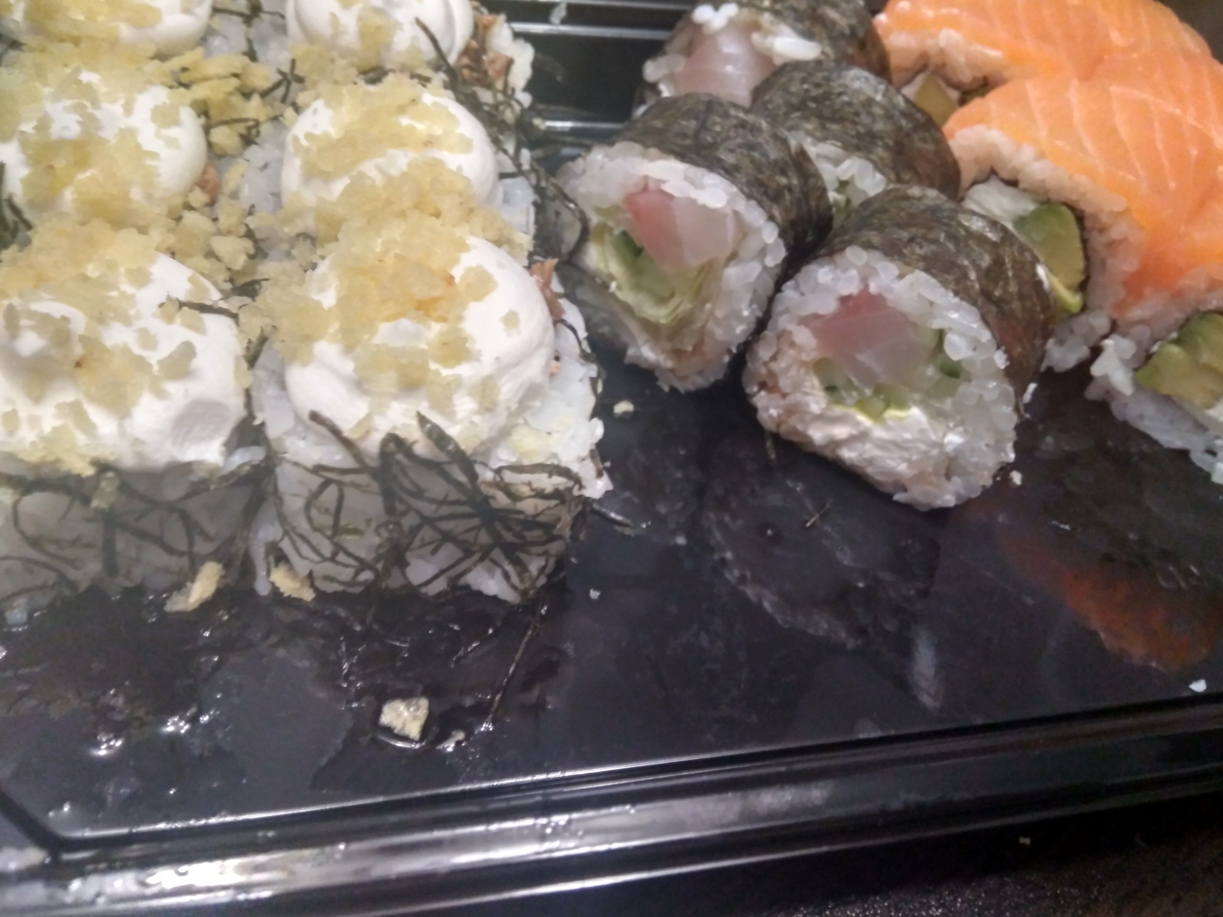 - В теплых ролла крайние кусочки отдаются запечатанными, так как большинству нравится дополнительная панировка на роллах!