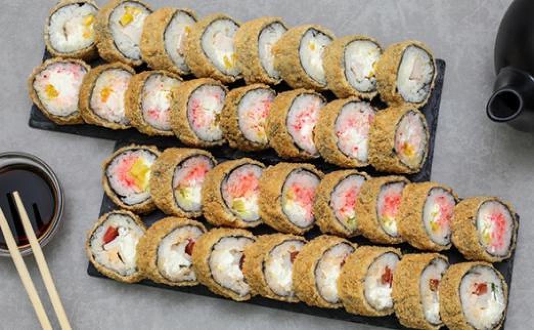 - В теплых ролла крайние кусочки отдаются запечатанными, так как большинству нравится дополнительная панировка на роллах!
