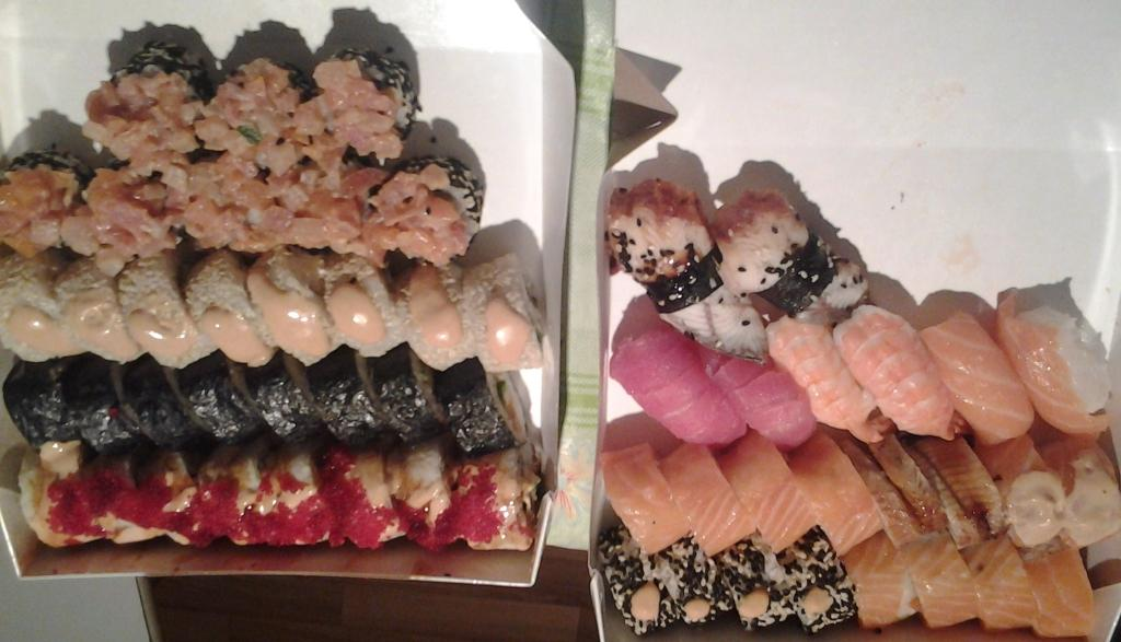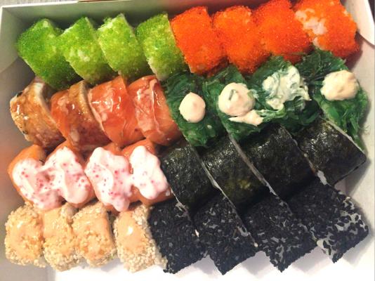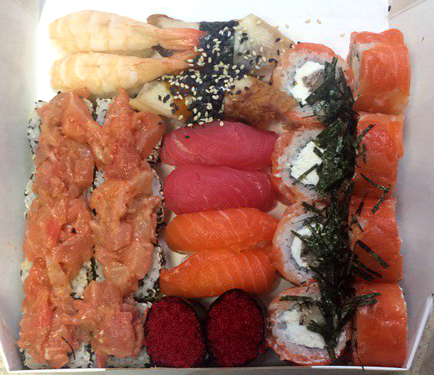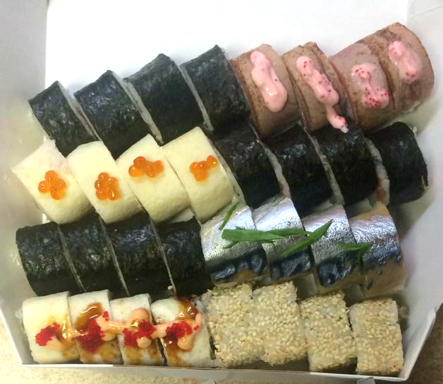Навынос: 32,90 руб. 69,80 руб. На доставку: 34,90 руб. 69,80 руб. Гарнир в подарок (имбирь, васаби, соевый соус)