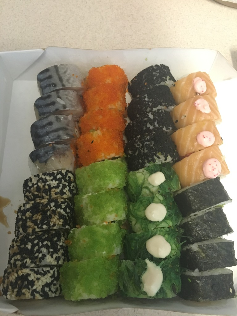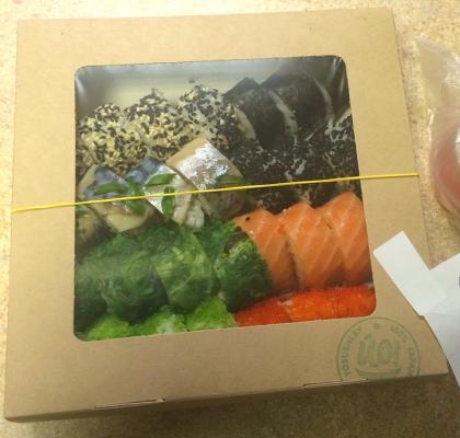 Заказывали сет "Уно". Несмотря на то, что сегодня пятница, привезли ровно через час. Очень свежие и вкусные . И чек, и салфеточки, и палочки. полный сервис. Спасибо. Будем с удовольствием заказывать еще.