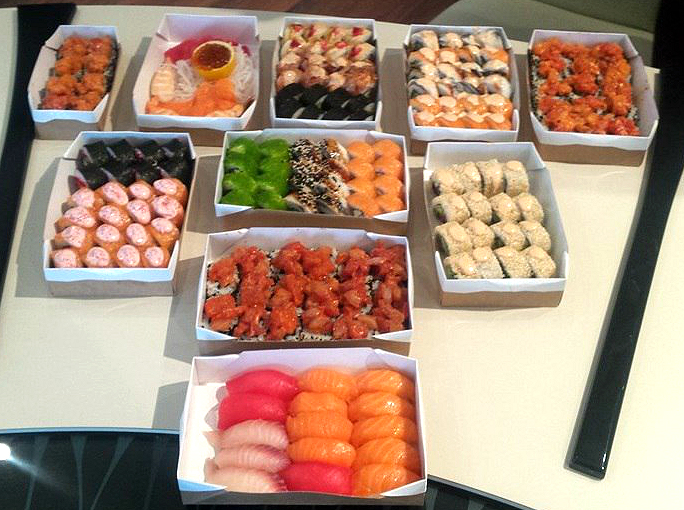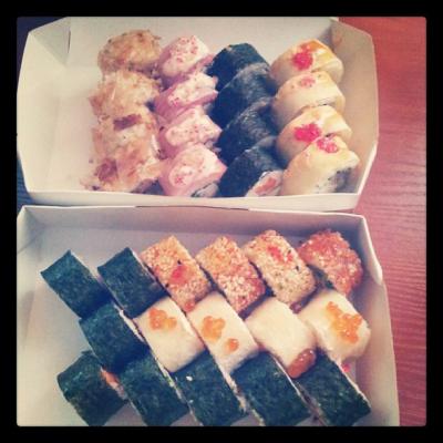 А вот эта доставка суши оставила неплохие впечатления. Приятная девушка оператор, вменяемое время доставки в выходной за город (привезли за 1.20). Заказывали сет, суши на вкус хорошие, вид аккуратный, не разваливаются. В целом по сравнению с другими предложенными на сливках доставками суши - только эти по вкусу и виду были зачетными. Ну и по сервису. Единственное, не сразу опознали ролл урамаки томаго - слишком он бесцветный по сравнению с фото. Точно попробуем еще, может, станете альтернативой для про или хаты.