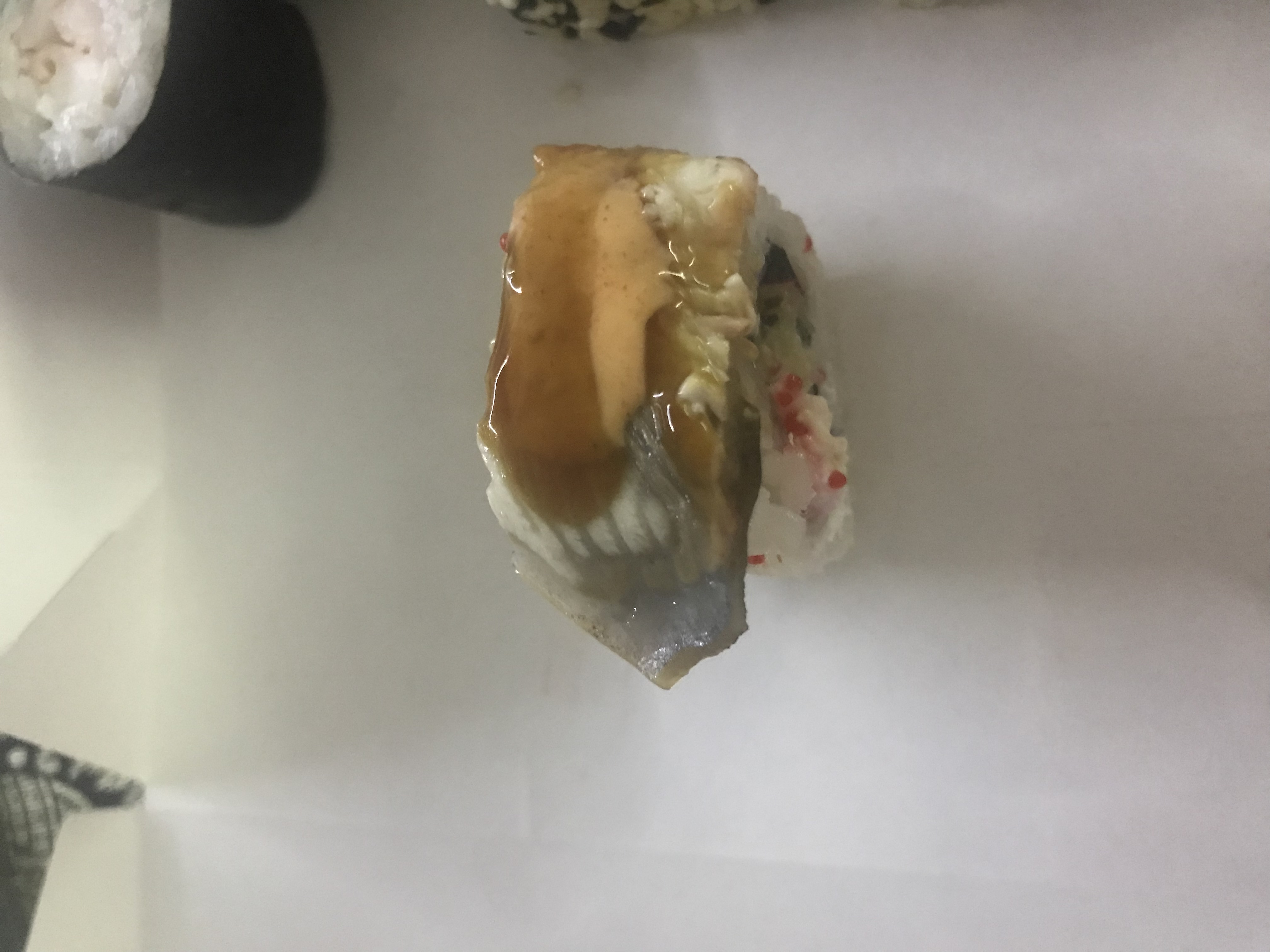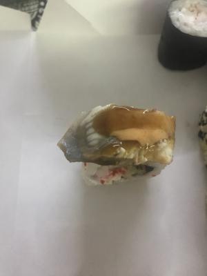 Вкус суши очень посредственным. Не спасает даже соевый соус.