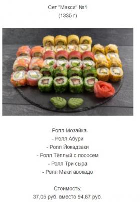 🍣 Стоимость суши-сетов: от 15,90 руб. от 34,50 руб.
