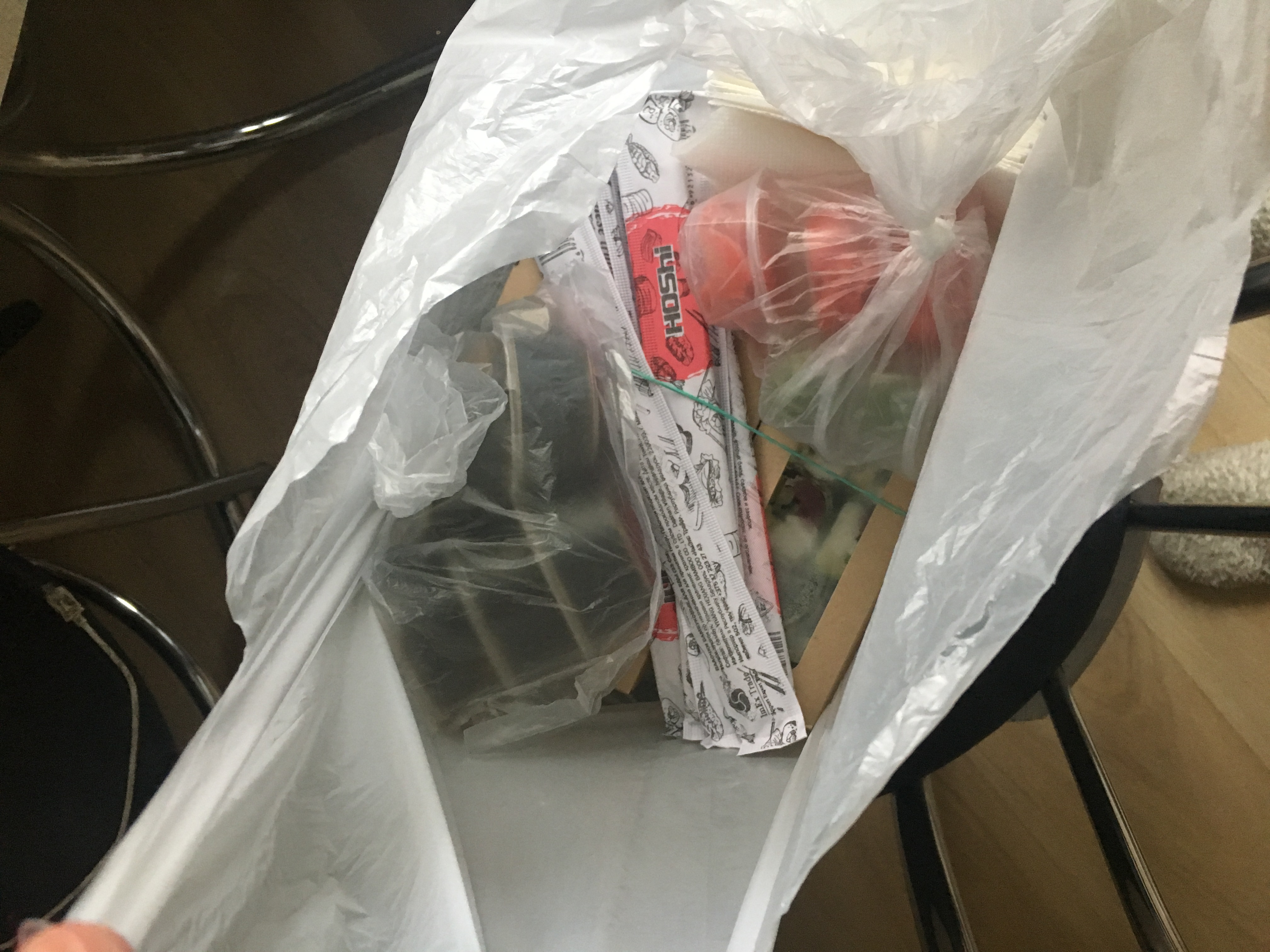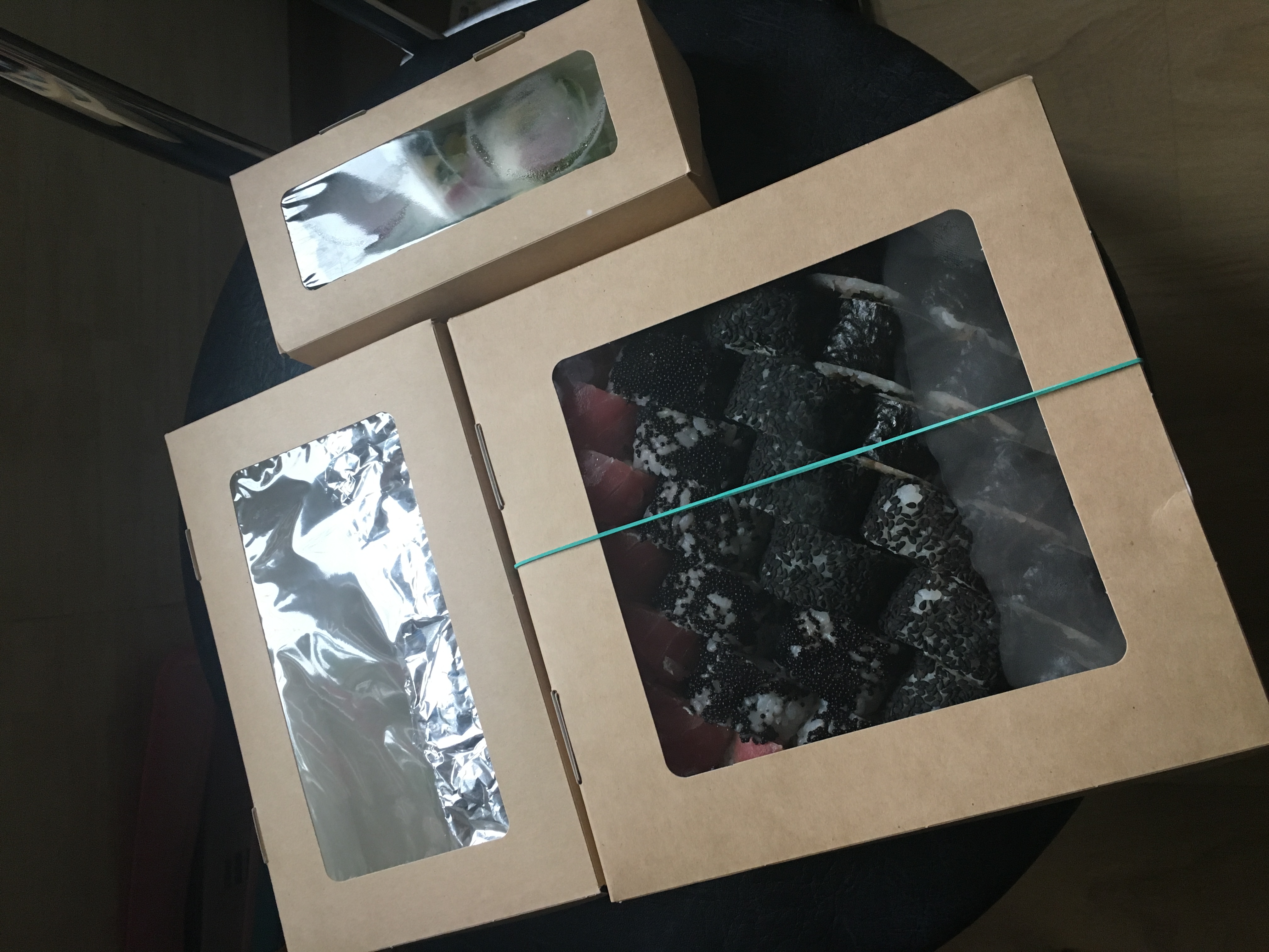 позвонили ,заказали, нам не назвали ни сумму, ни бесплатная ли доставка, через час вообще перезвонили и переспросили еще раз какие мы сеты заказывали, в общем вкусно,но нужно улучшать качество обслуживание клиентов