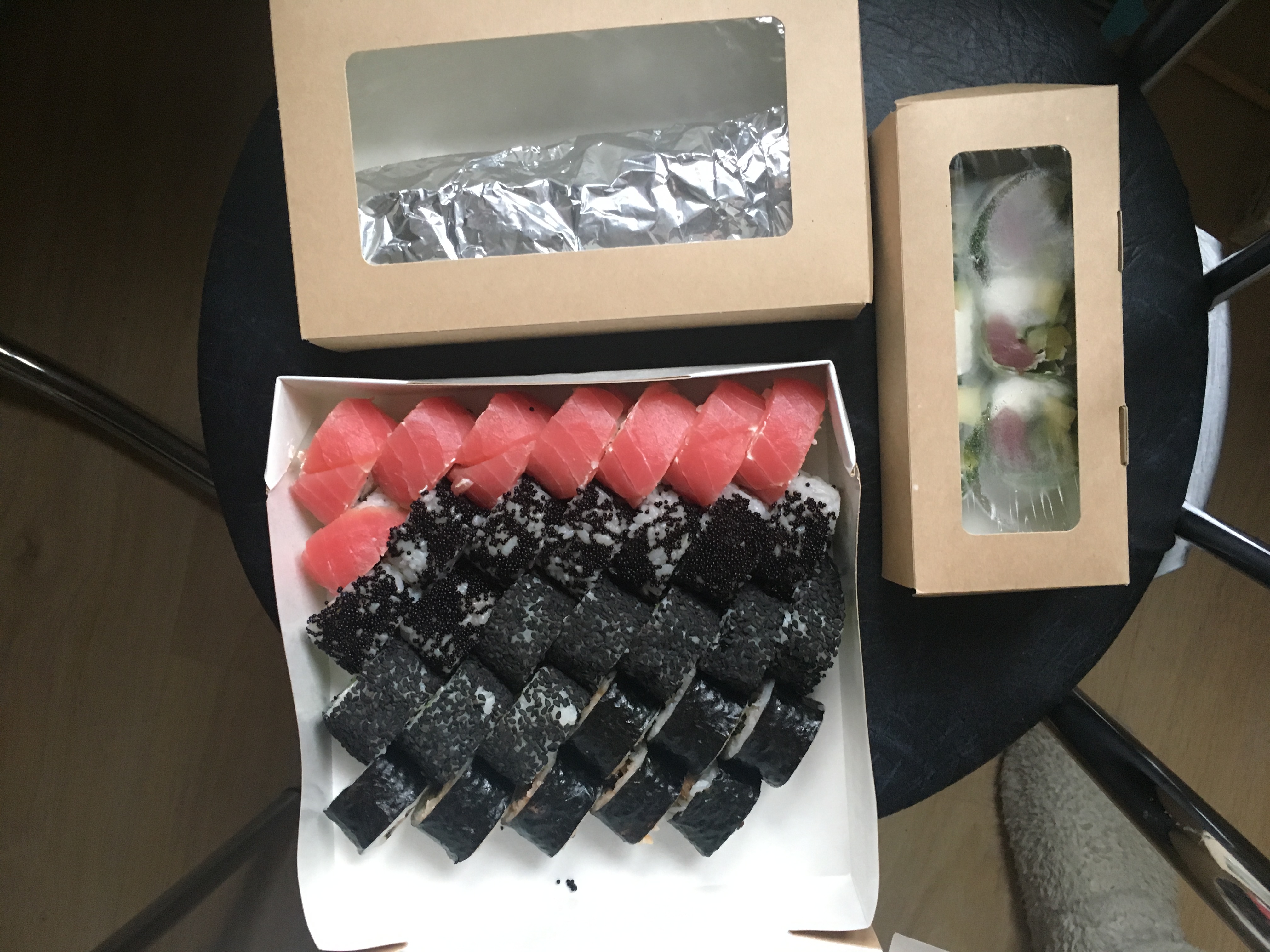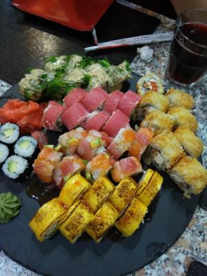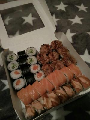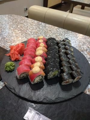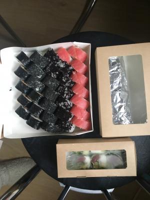 Брали большой сет ( макси 3). Обычные не плохие суши, аккуратно лежали в коробке, даже теплые еще были) Заказ оформляли через viber. Заказ привезли  практически минута в минуту по указанному времени. Единственное платеж по карте не прошел, пришлось платить наличкой.