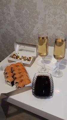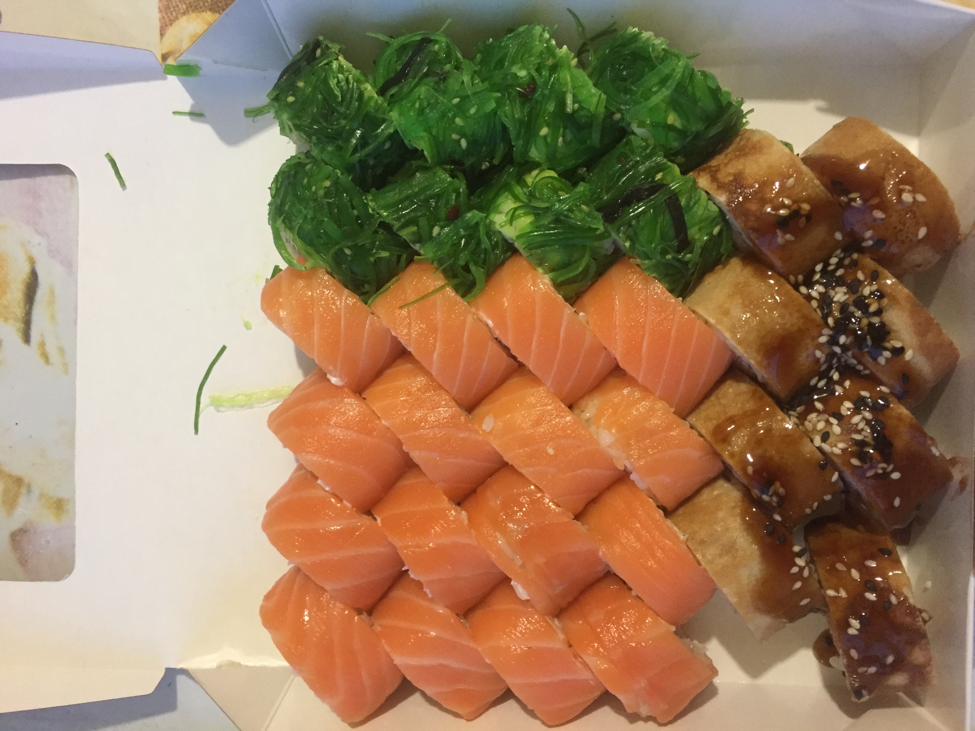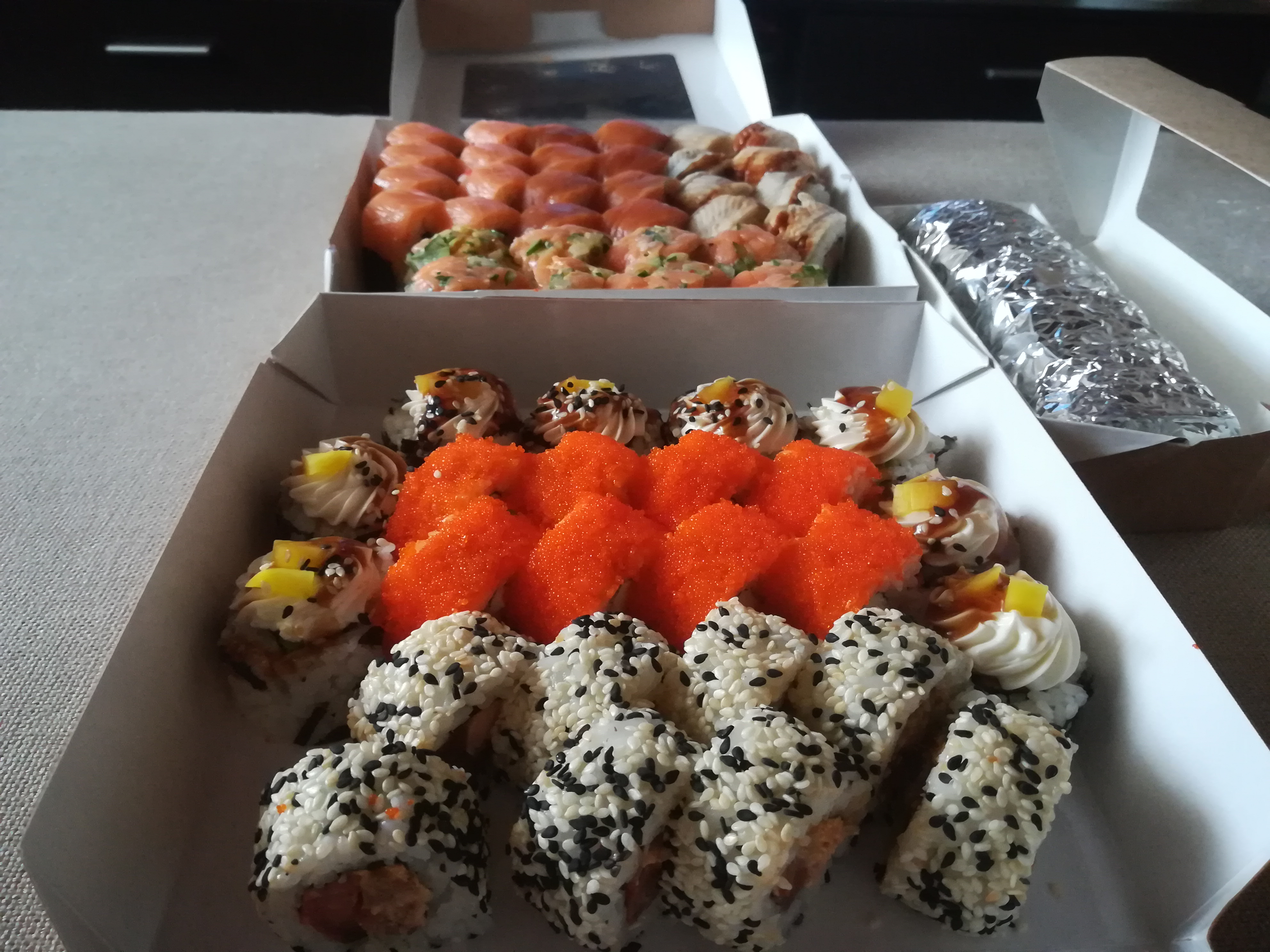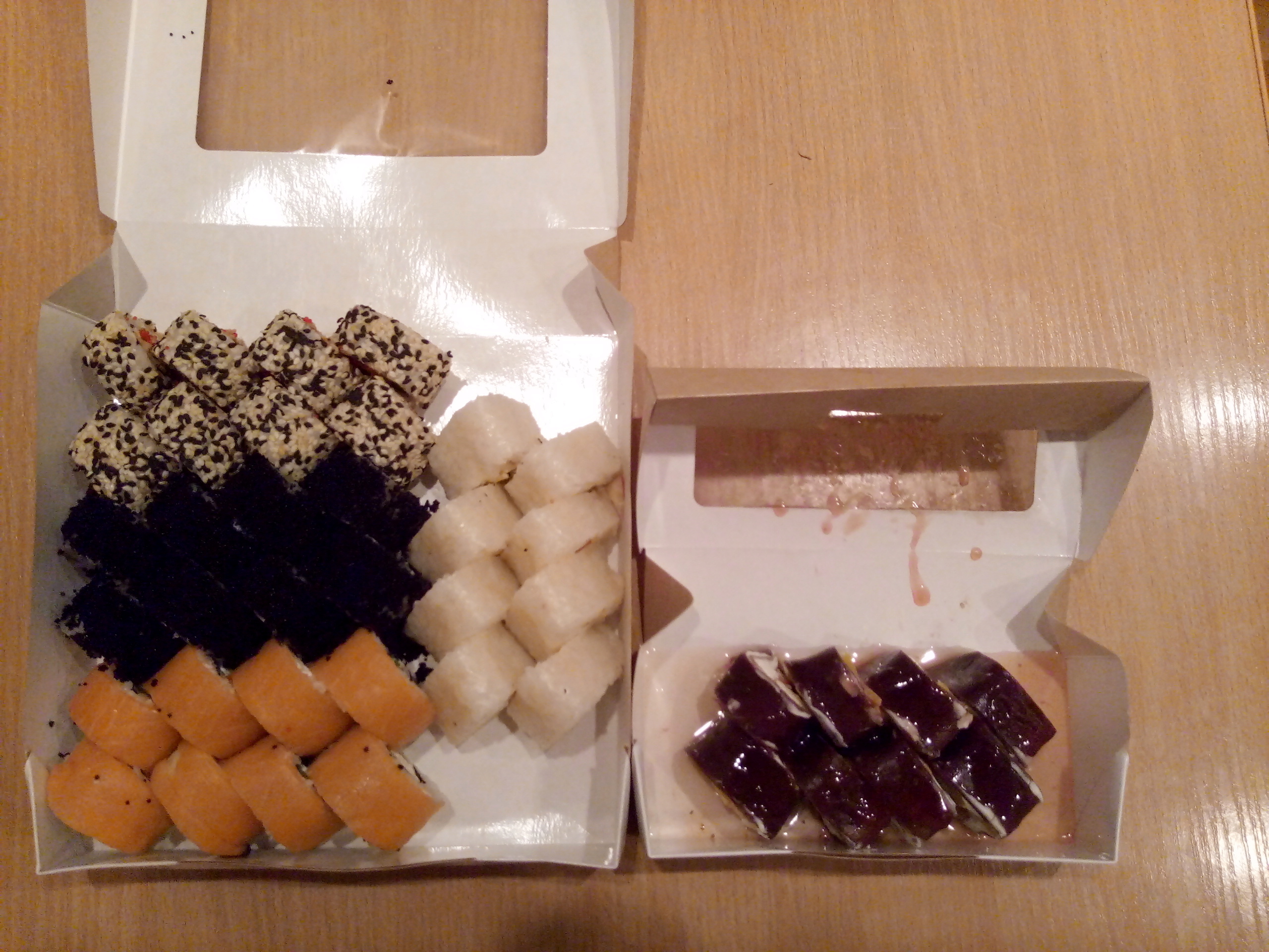 В первый раз брал здесь суши: в начале возникла небольшая неразбериха по акциям, но потом оператор исправился и вот уже вечером я забрал заказ. Цена очень адекватная + приятный бонус в виде 2 сетов из 8 роллов на выбор. Суши в наборе где-то понравились больше, где-то меньше, но в целом вполне себе норм.
