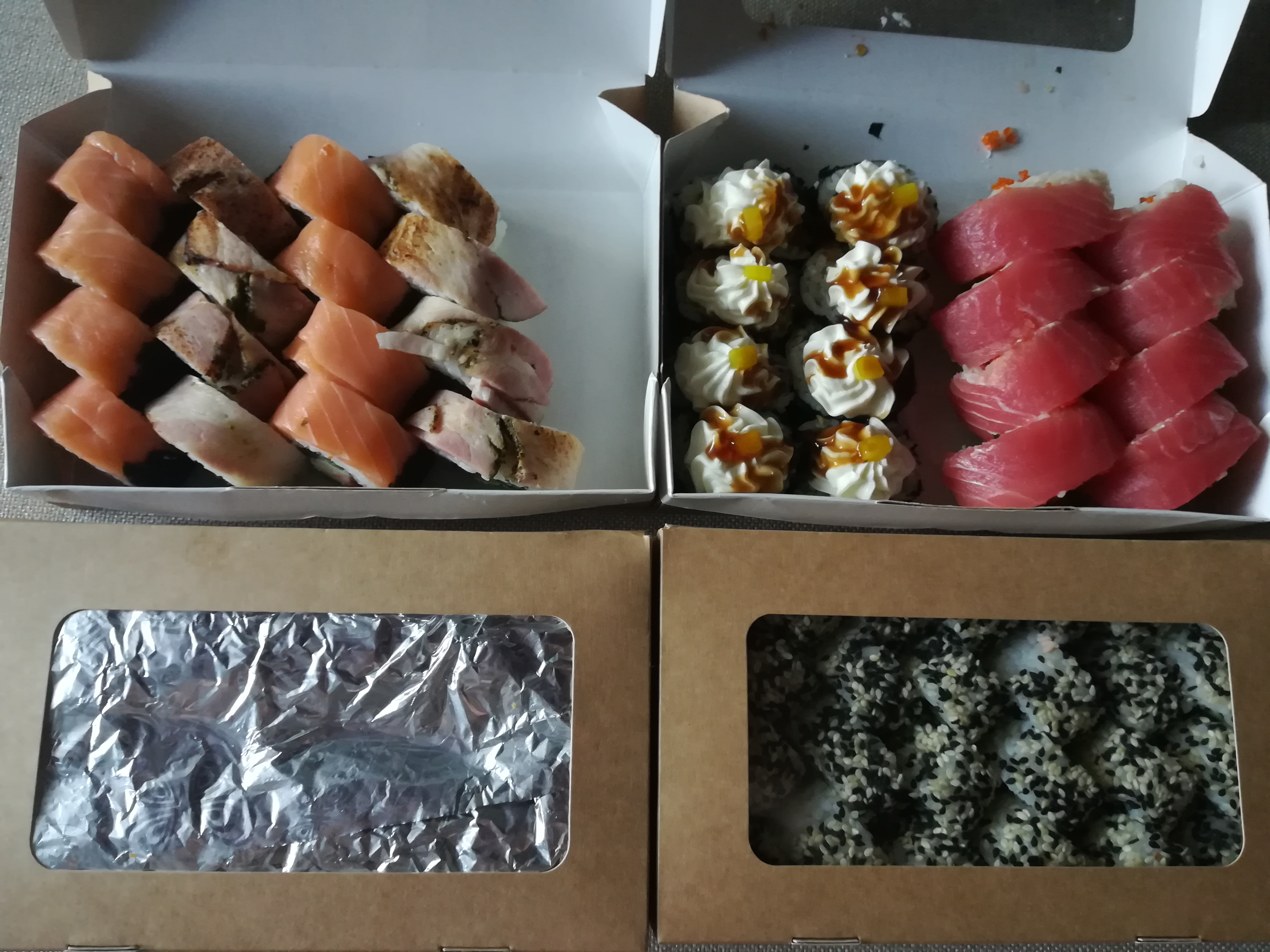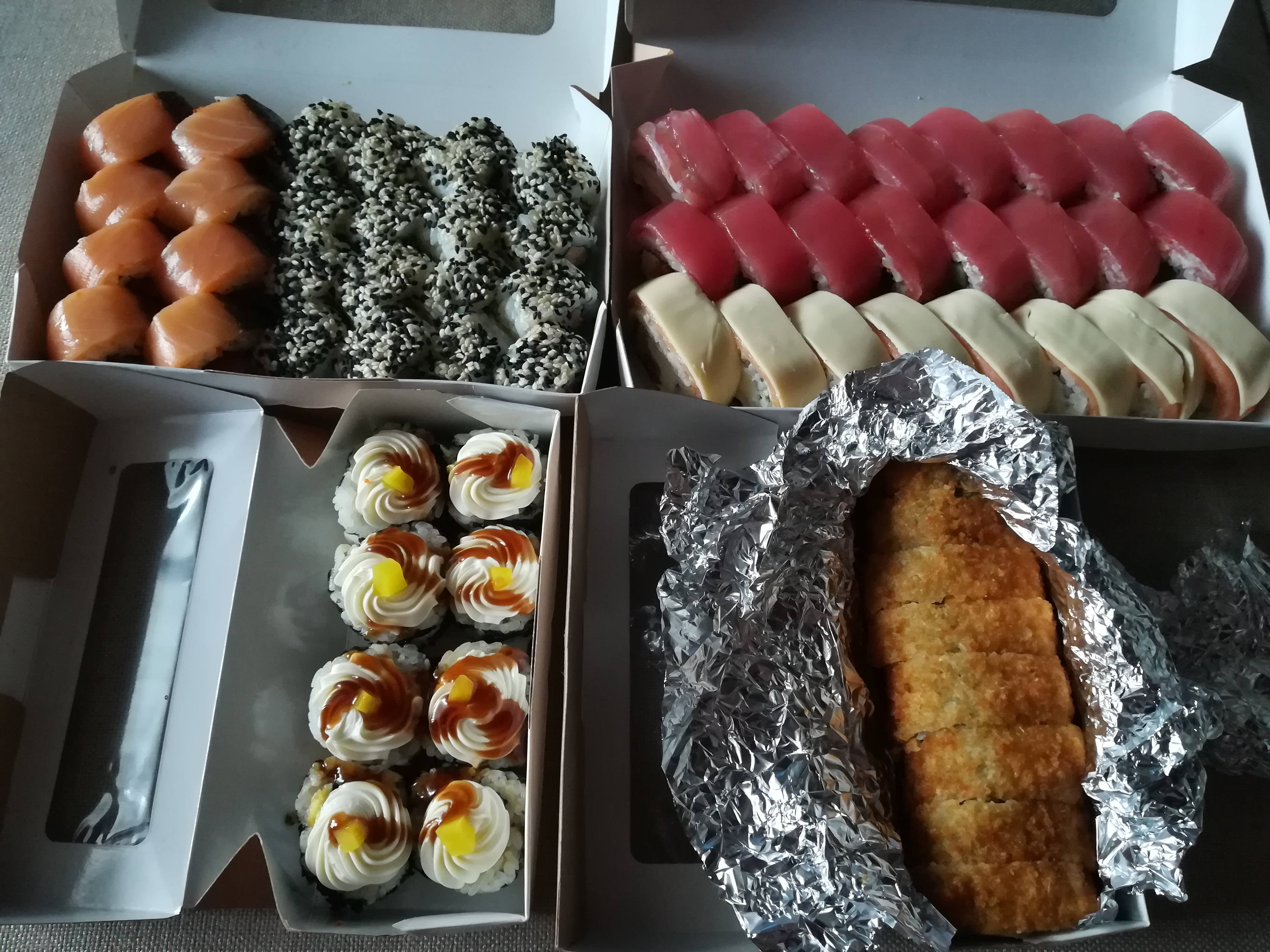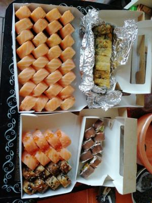 Вчера разместили заказ на суши. Все порадовало: общение с оператором, быстрая доставка, вкусные и сытные суши. Вот только один непонятный момент появился сегодня: суши, которые не съели вчера, мы упаковали и поставили в холодильник, а сегодня в сяке каппа маки рыба испортилась. Конкретный запах рыбы с душком, даже коты отказались есть рыбу, которую достала из суши. При этом в других видах, а заказывали мы их 7, рыба нормальная, без запаха и без привкуса.