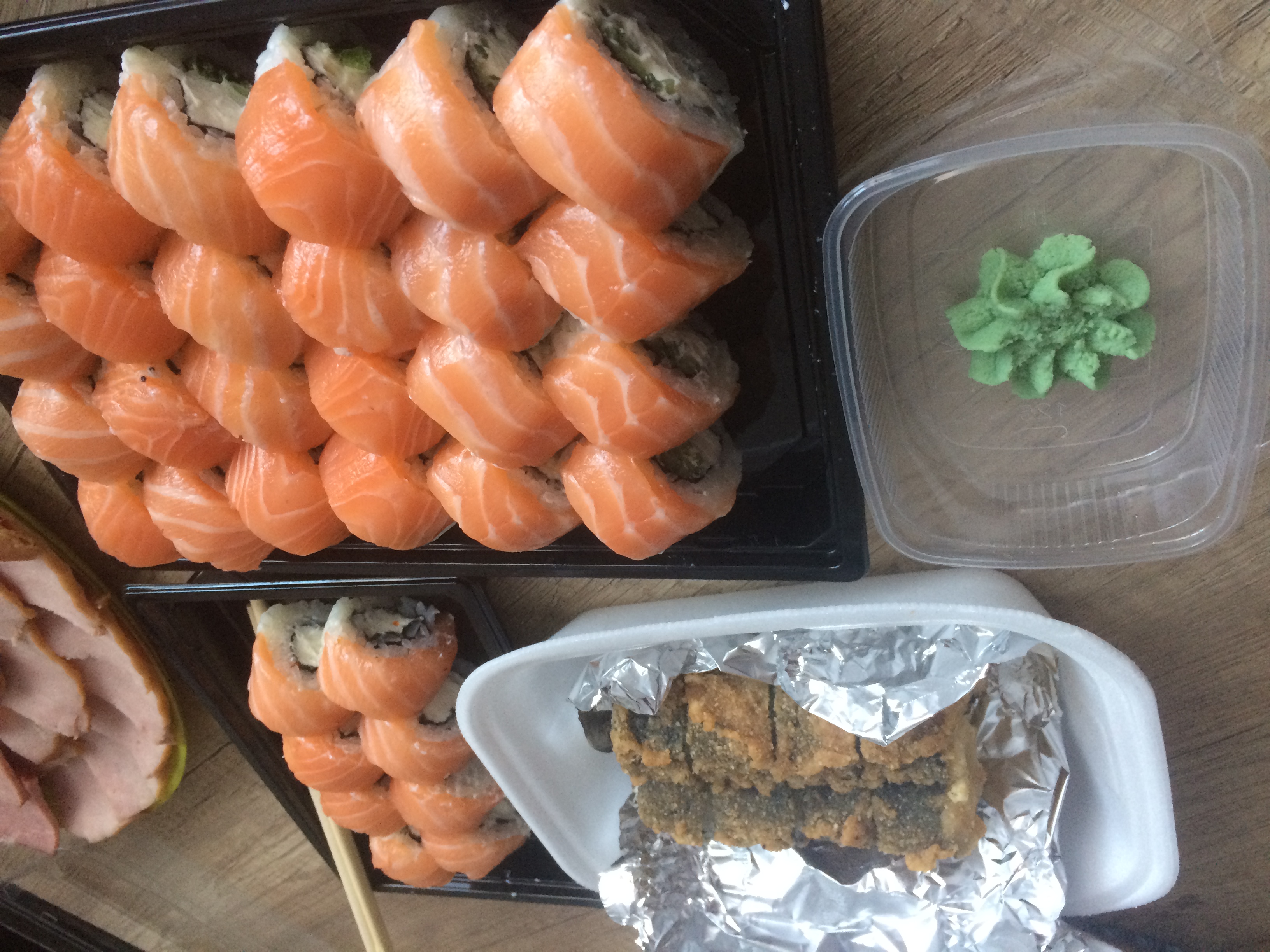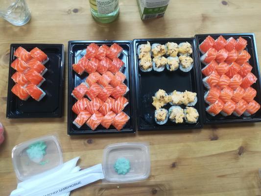 Заказ день в день в 11.00. Доставка, как и было заявлено диспетчером, около 14.00. Роллы очень вкусные и свежие. Достаточное кол-во имбиря и соевого соуса. Расчет с курьером наличными.