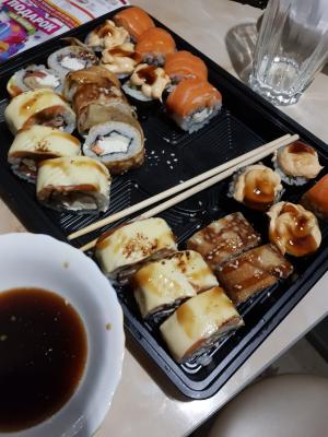 Вкуснейшие суши, свежие, аккуратно упакованы. И доставка вовремя. Заказываю не первый раз. Всегда довольна.