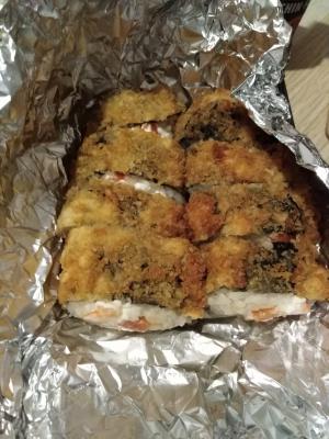 (креветки, помидор, сыр сливочный, сухари темпурные, нори, рис)