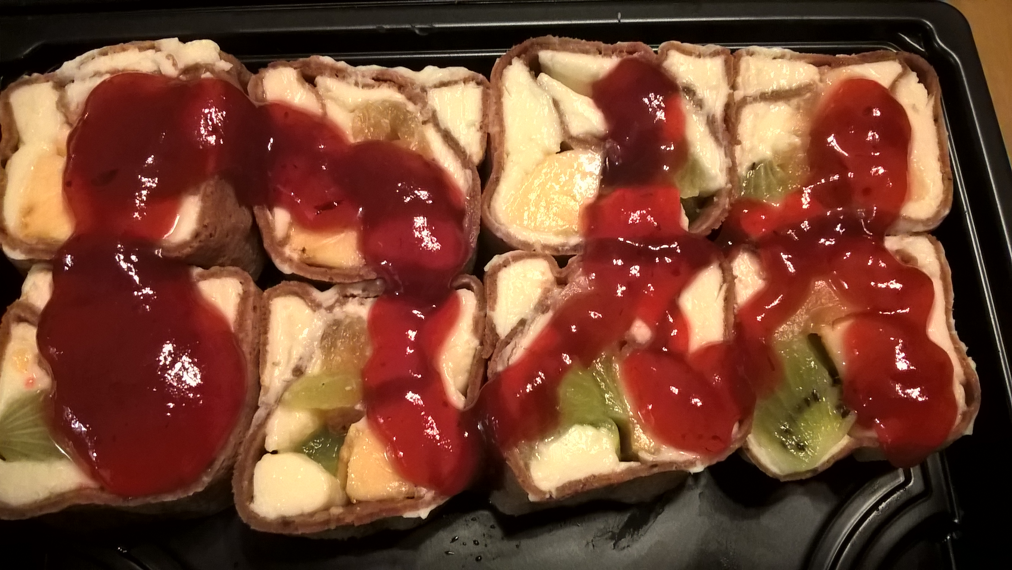 - 8 шт. (220 г) - "Каниши" (банан, персик, яблоко, крем чиз, блин, топинг)