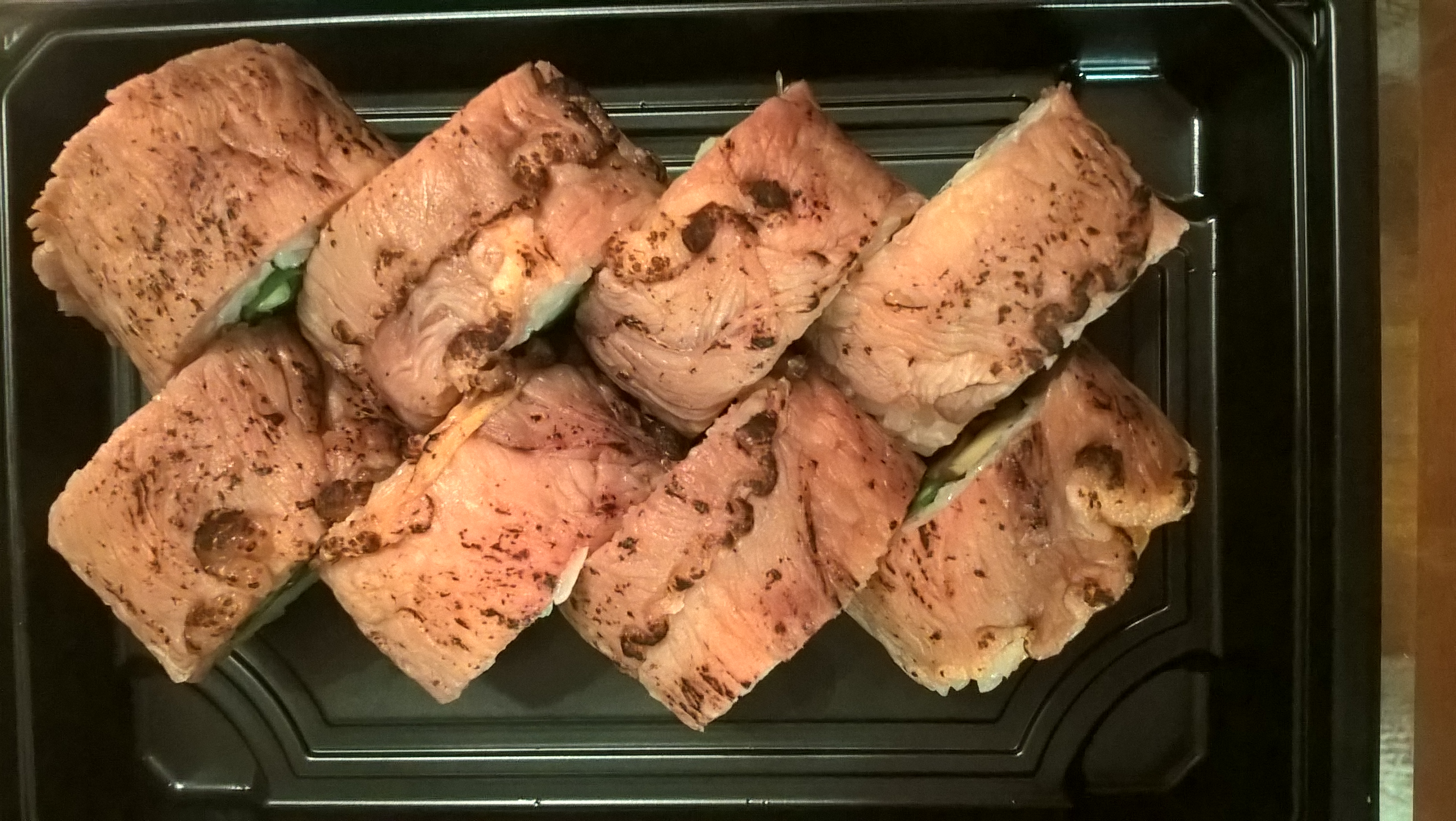 (лосось подкопченный, сыр сливочный, перец, лук зеленый, нори рис)