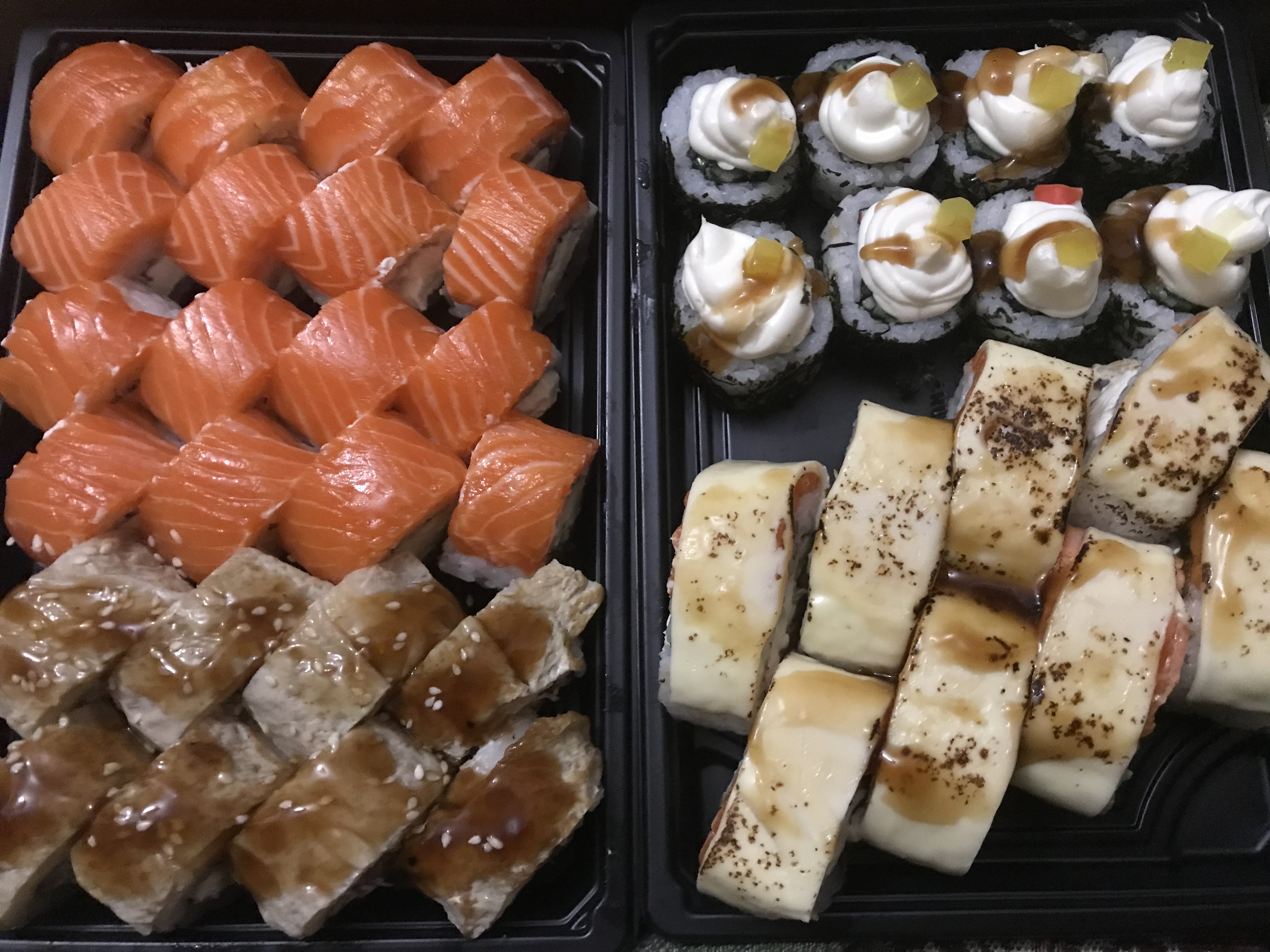 Наша любимая доставка суши. Есть с чем сравнить. Суши большие, сочные и сытные. Филадельфия наш фаворит