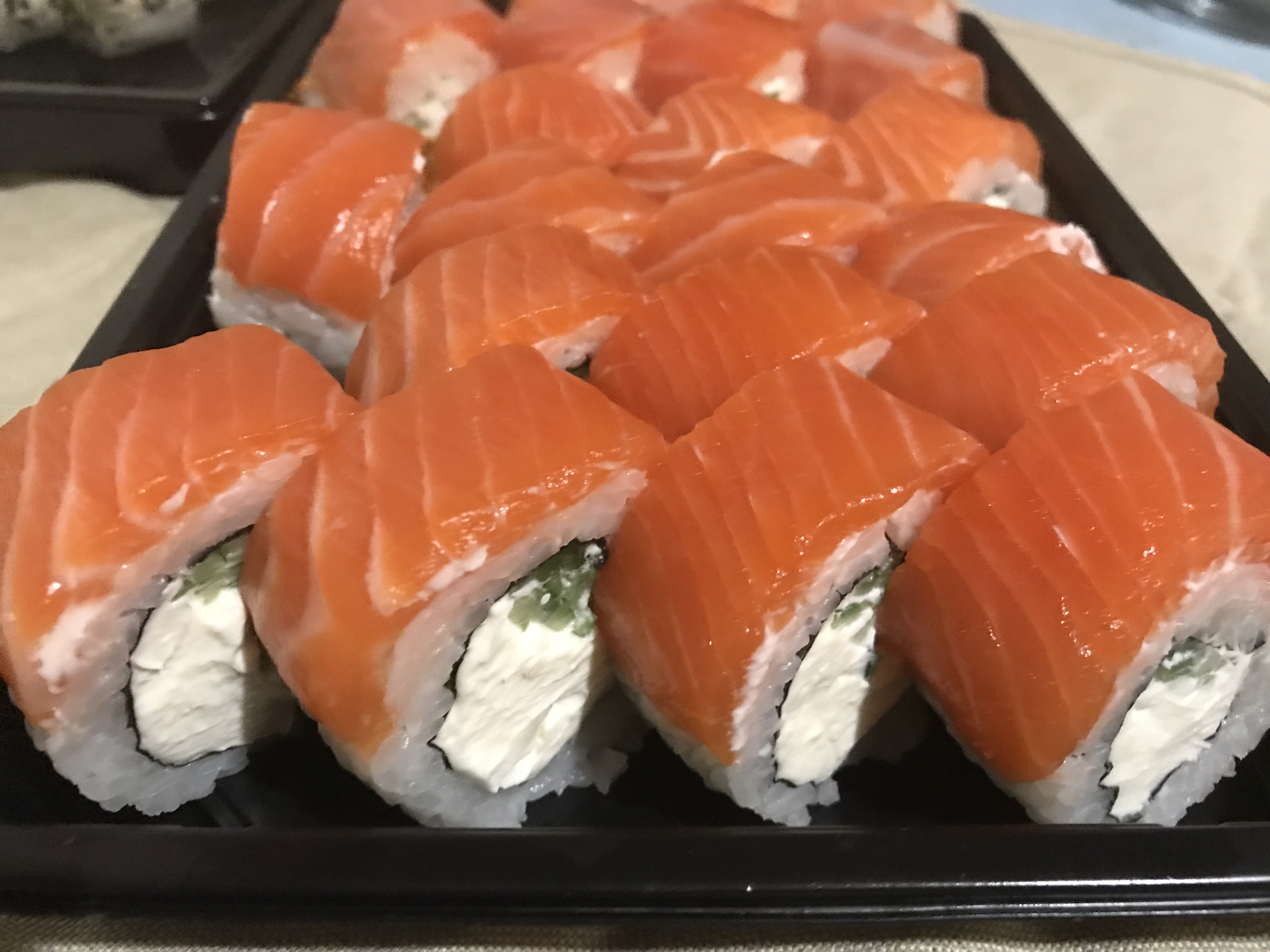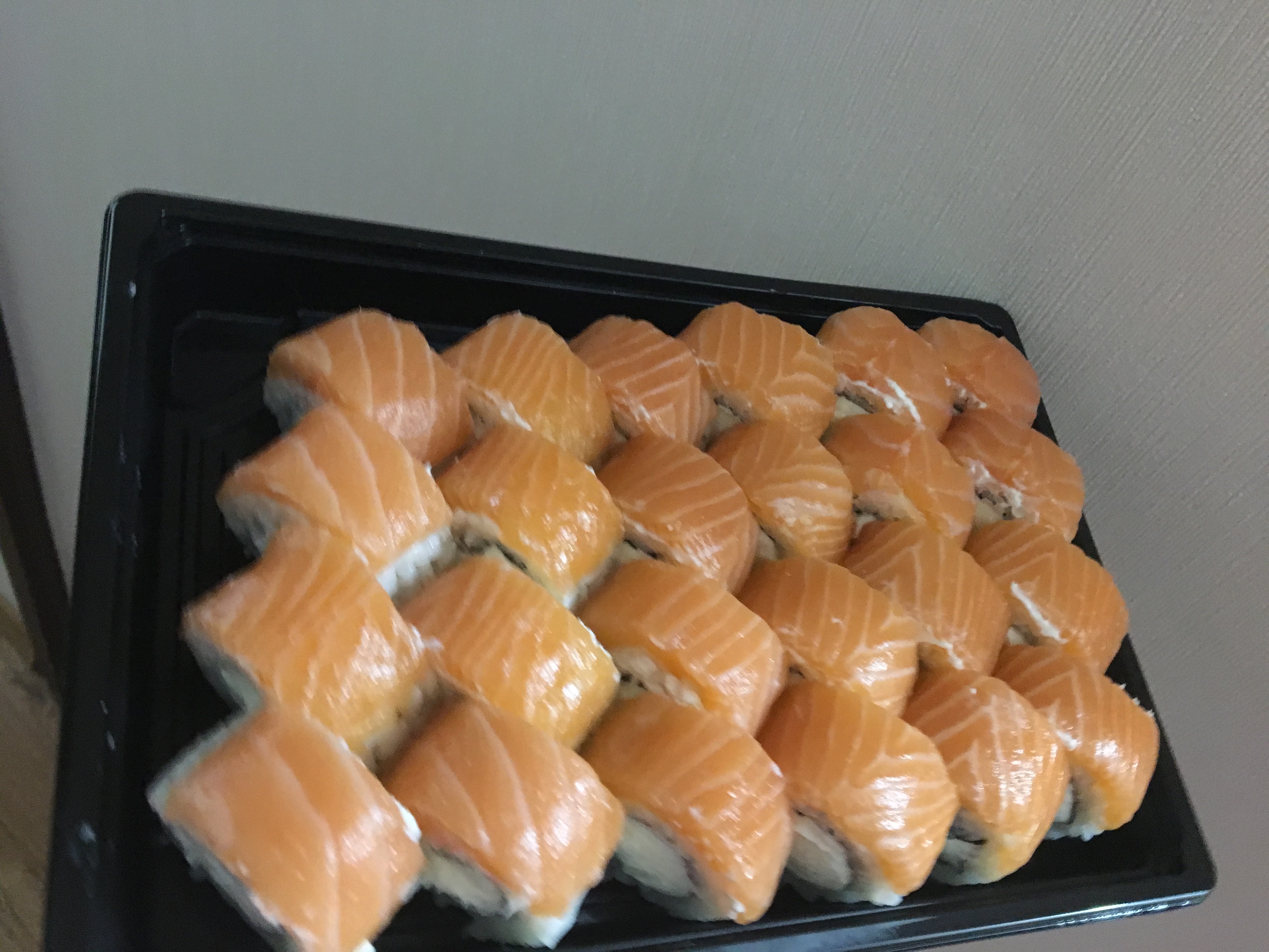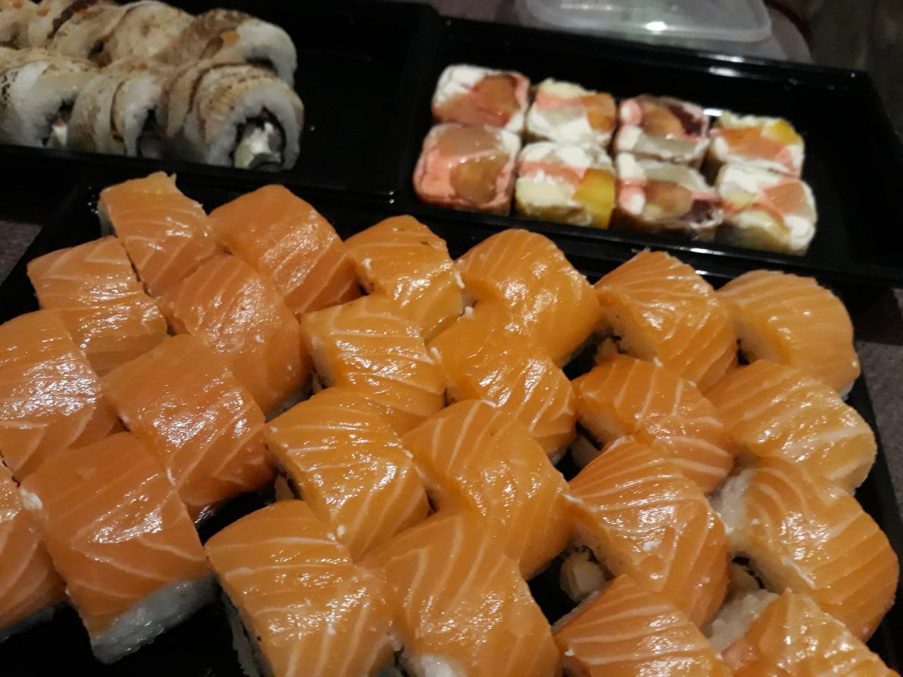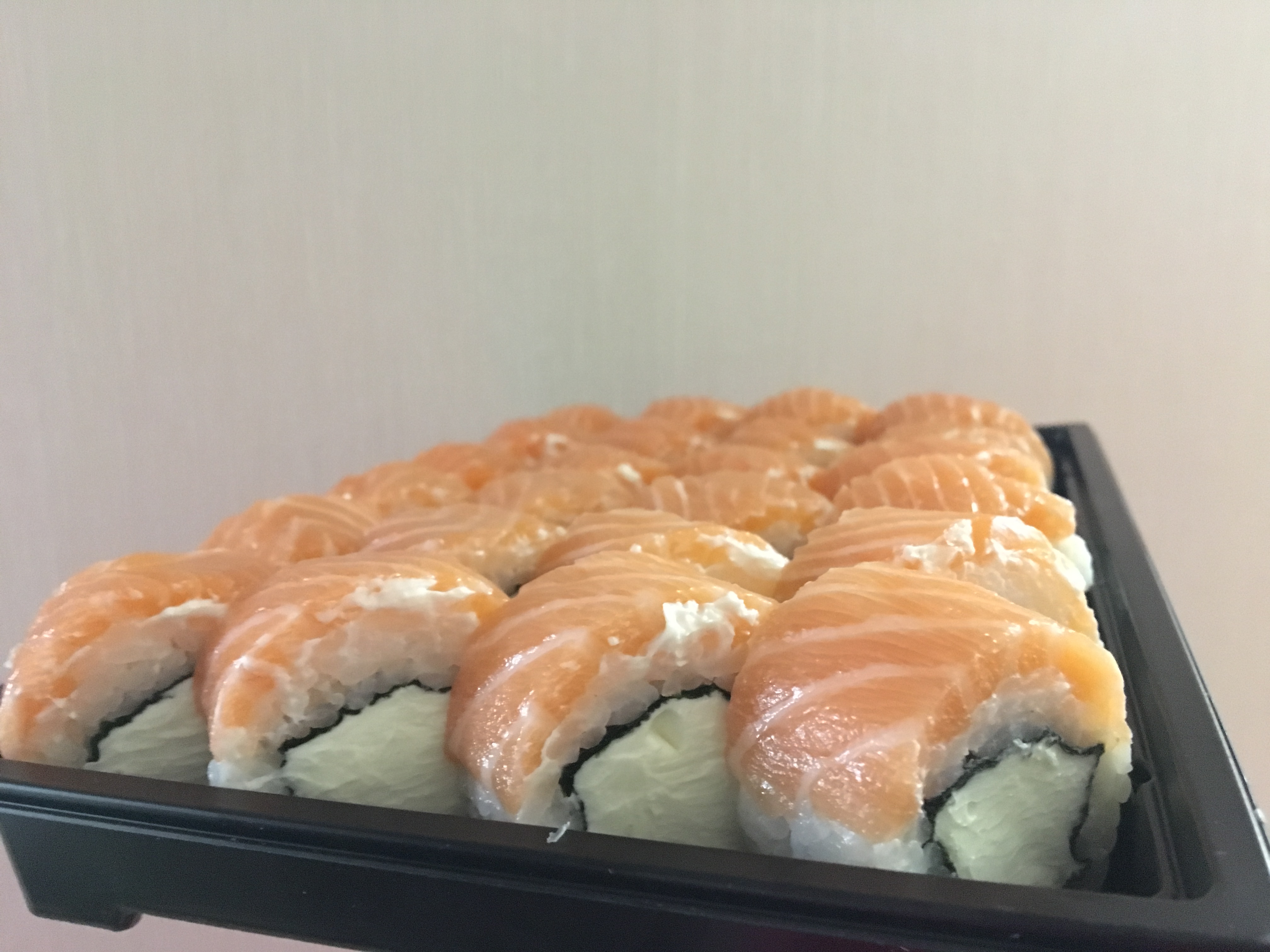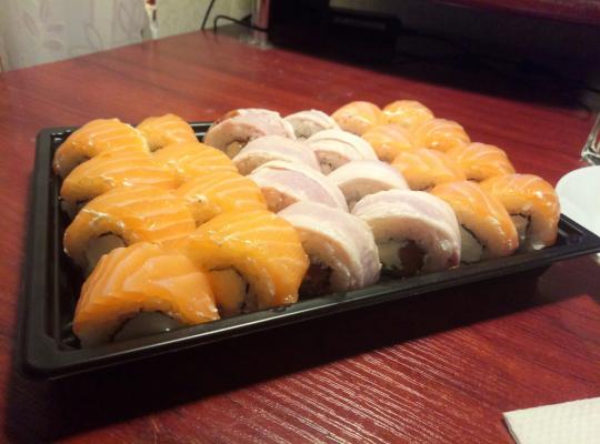 Очень вкусно! Заказывали 3 порции "Филадельфия класс." дали в подарок сладкие роллы, пробовали впервые очень понравились.