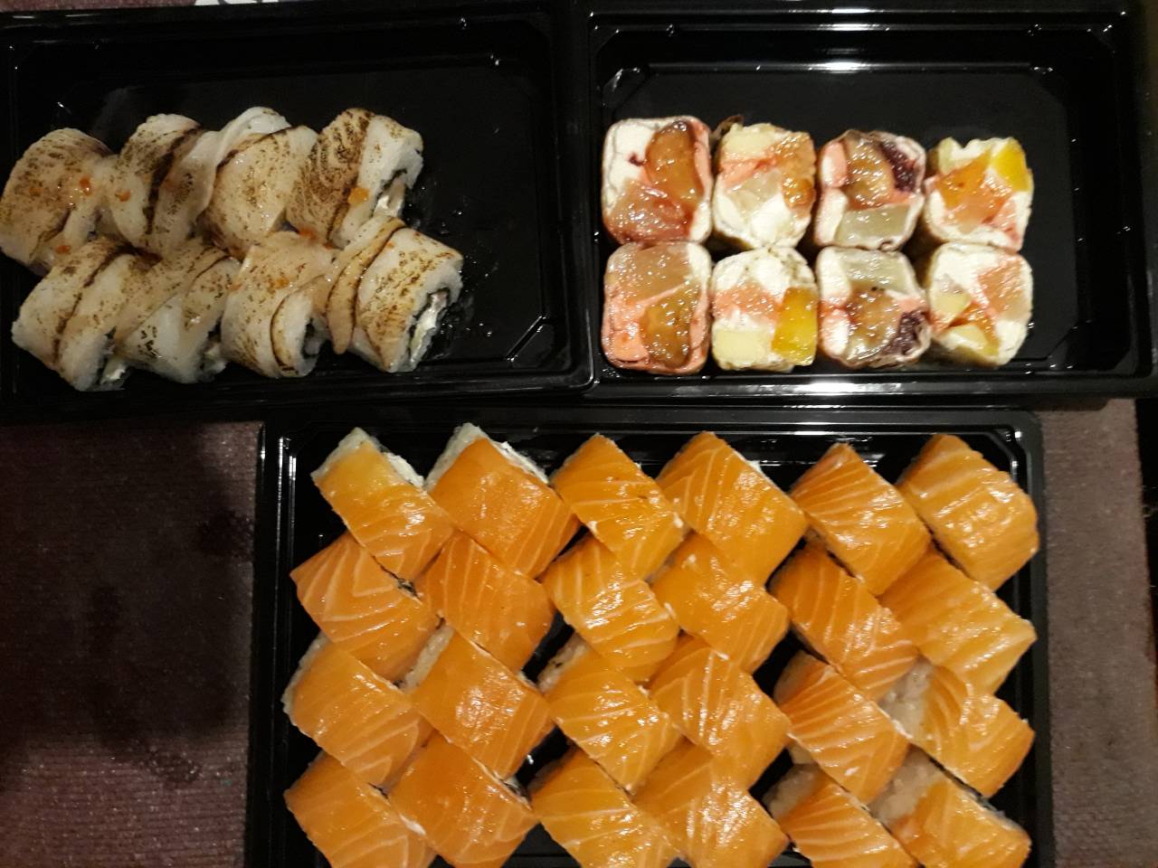 Первый раз заказывали,очень вкусные и сытные суши! Доставка во время!!! Огромное спасибо!!!