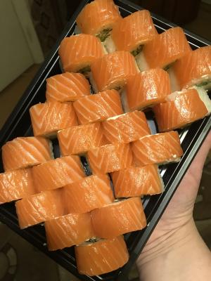Роллы практически всегда забираем сами. Ребята всегда угощают вкусными акциями и не задерживают с готовностью заказа. Сами роллы свежайшие, начинки не жалеют, в Филадельфии рыба качества премиум. Спасибо огромное!!!