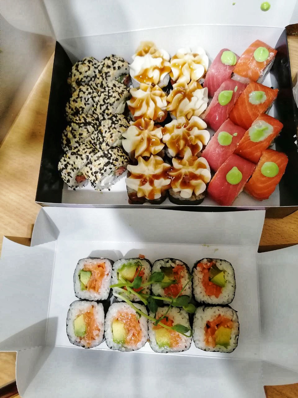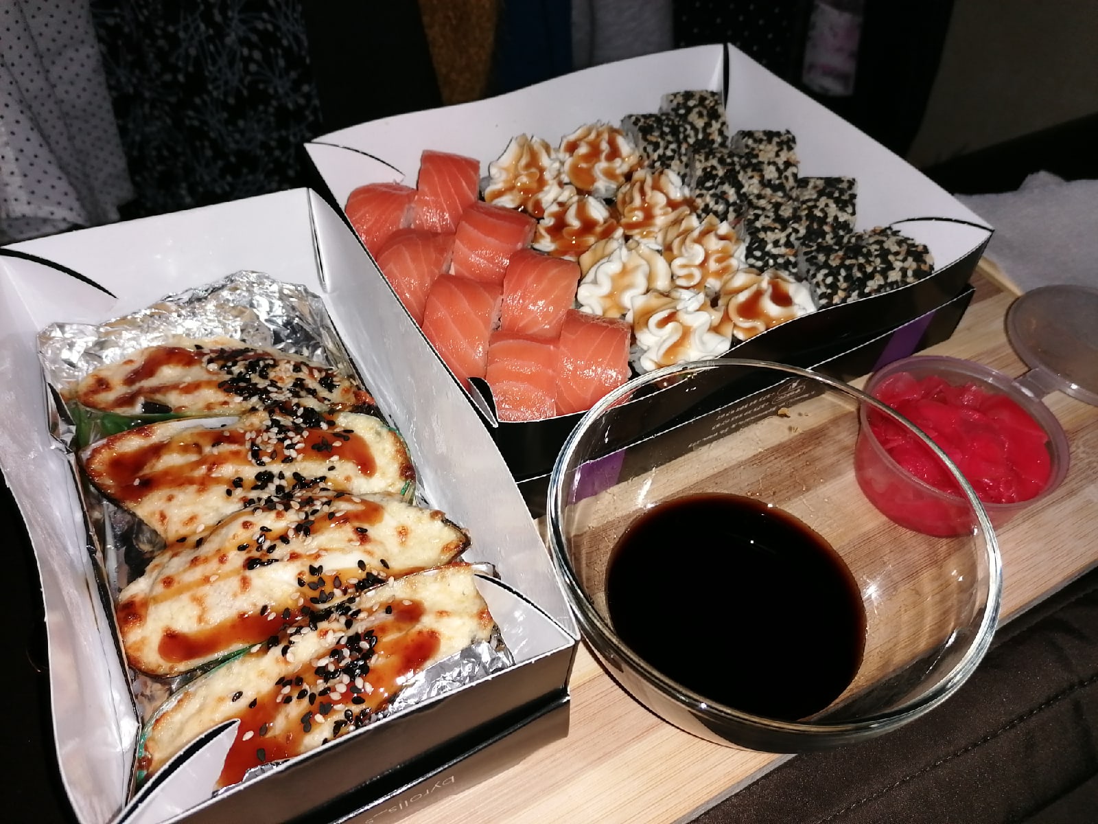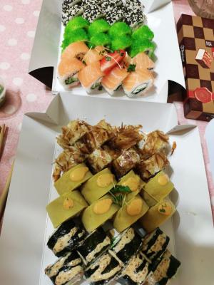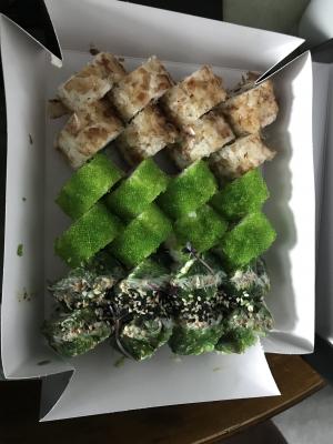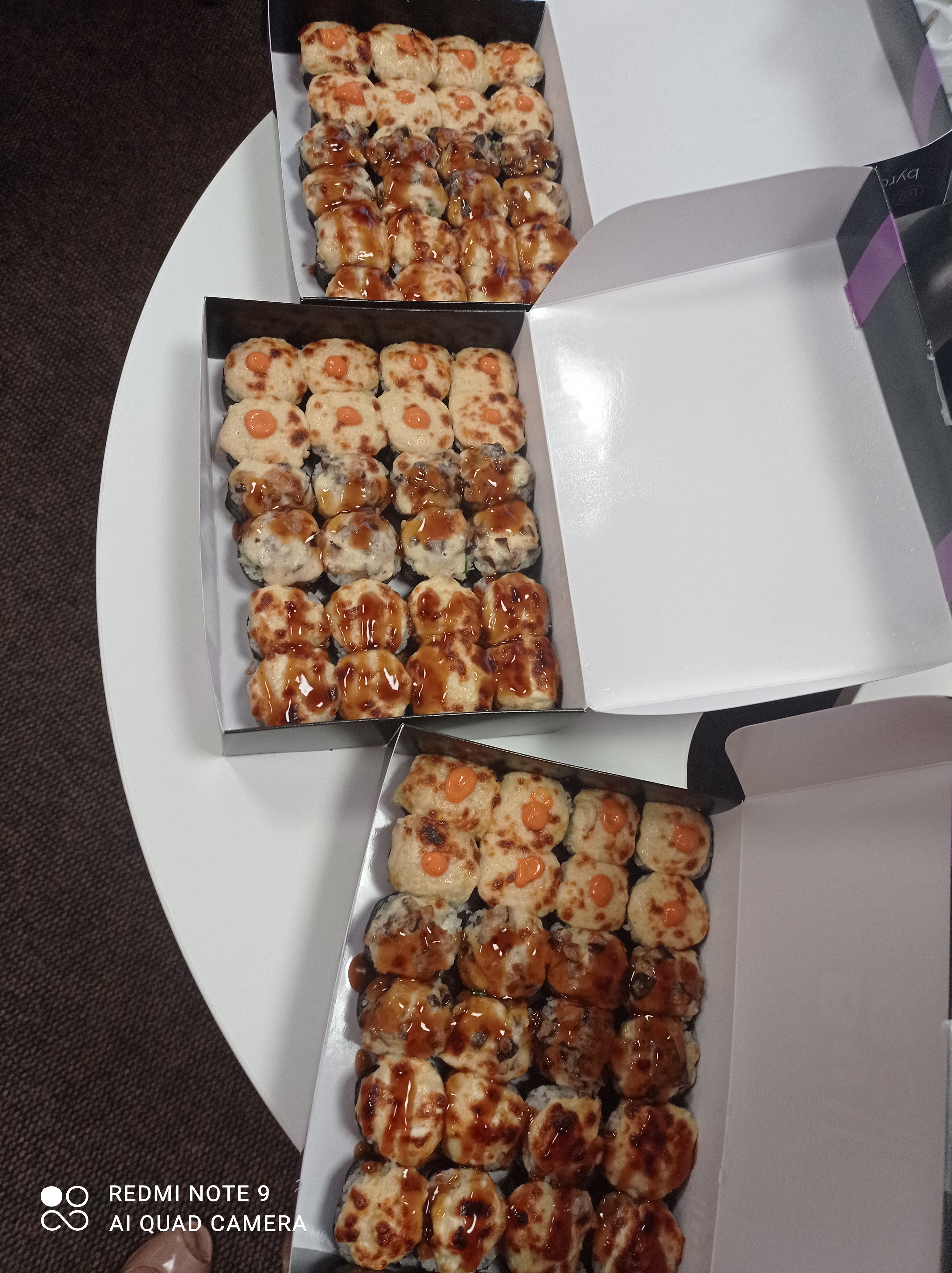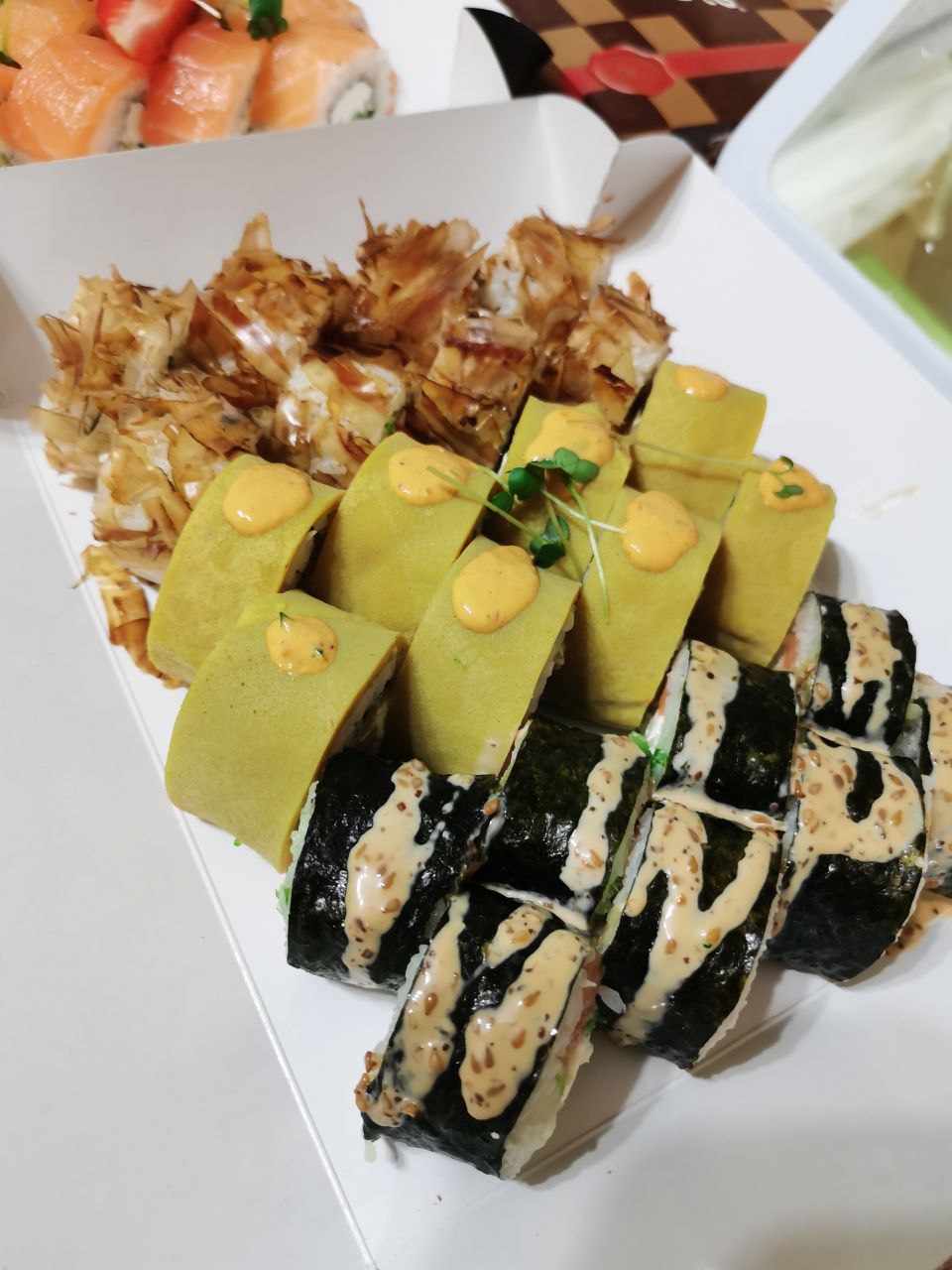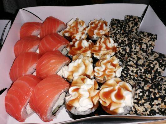 Первый раз заказывала тут суши. Доставка быстрая, даже вечером в час-пик. Аккуратные роллы. Филадельфия мне понравилась, вкусная, рис хороший. К остальным есть вопросы но тут уже скорее дело вкуса. По мидиям респект, очень большие. Единственное просьба к поварам, замените майонез, он очень жирный и вкус мидии я совершенно не чувствовала, было жирно и очень майонезно. А так неплохо. Буду еще заказывать, но уже отдельные позиции