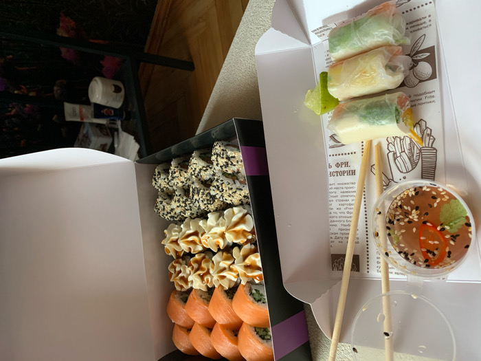 Очень не довольна доставкой. Обещали в течении 1-1.30, в итоге через час перезвонили и сказали что приаезут ещё через час, что курьер в пути и в связи с погодными условиями задерживается, предложили бесплатный десерт, а оказалось что курьер не был ни в каком пути и слышал наш разгоаор. Итог суши доставили через 2 часа 15 мин, десерта естественно не было. В 21.05. Вечер испорчен, суши очень большие, не понравились (не надо было экспериментировать, а заказывать проверенные) , упоковка только и парадовала. Не рекамендую!!! Могут испортить и вечер и настроение.