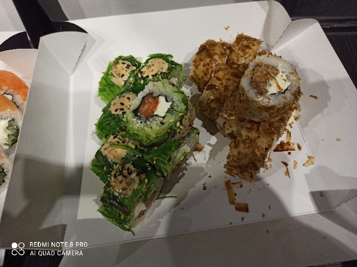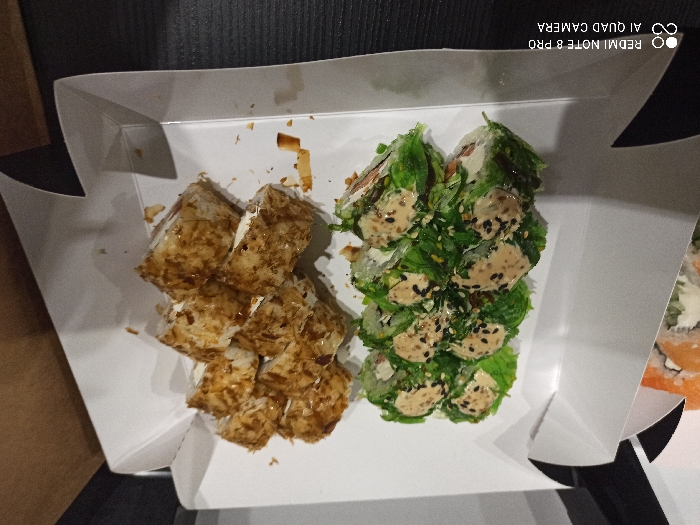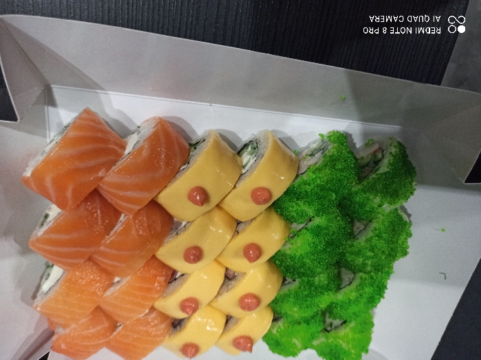 Суши вкусные, свежие, роды тоже вкусные и свежие. Доставка хорошая.