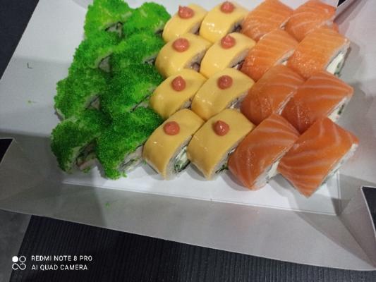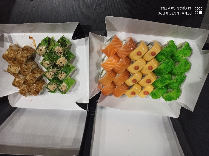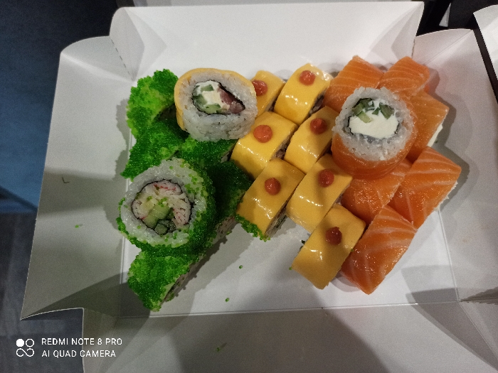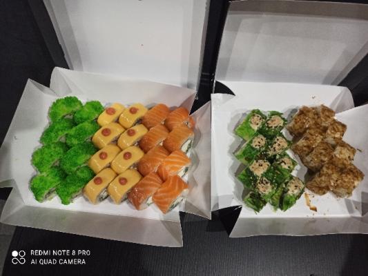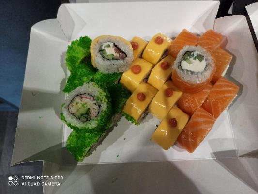 Заказывали сет 5- прекрасные суши, очень вкусные и свежие. Забирали сами, обслуживание быстрое и вежливое. Спасибо за прекрасный вечер, отдельная благодарность  от ребёнка за суши с жёлтым сыром сверху) будем заказывать ещё!