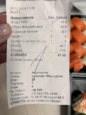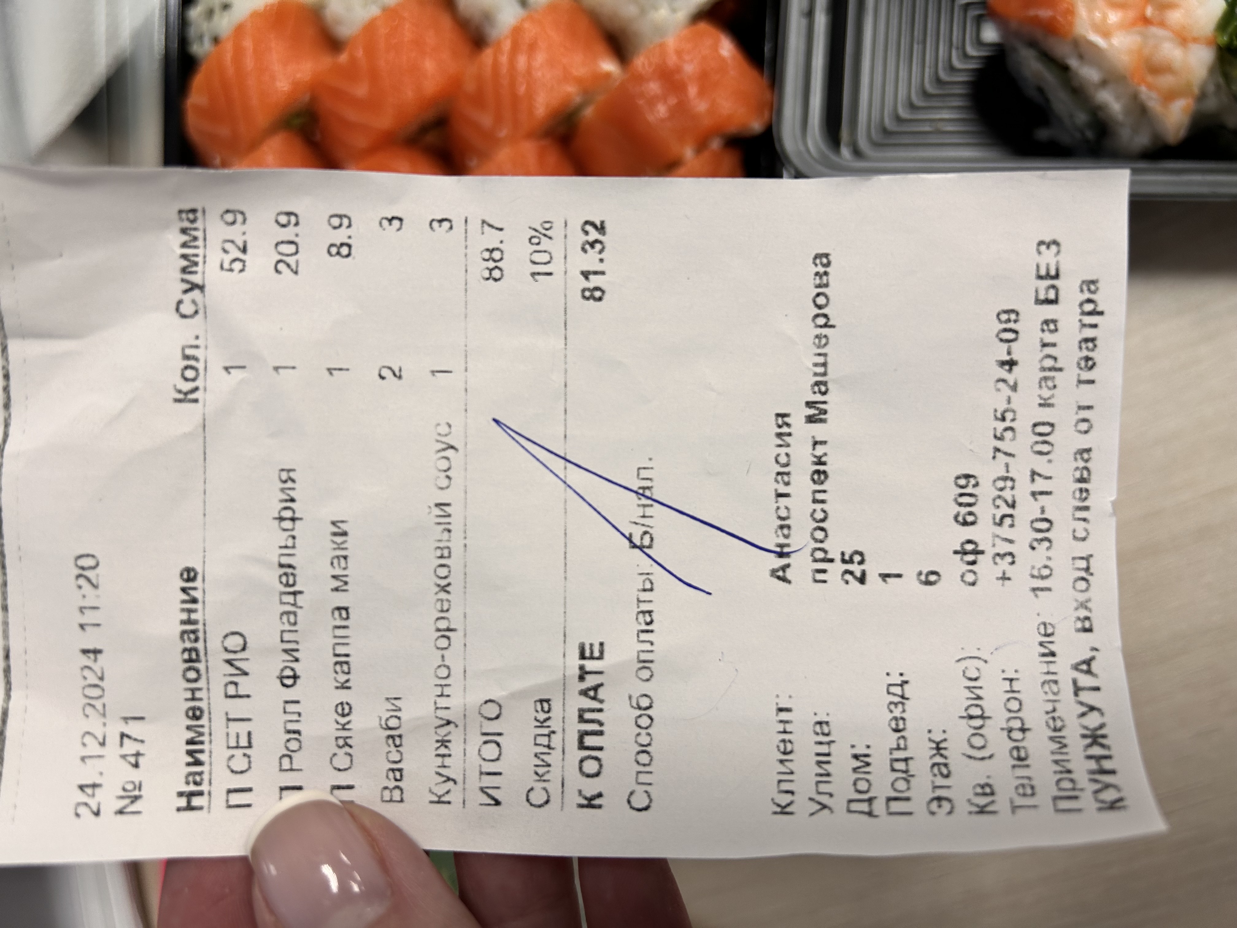 - Расчет при заказе навынос осуществляется на месте наличным или безналичным расчетом