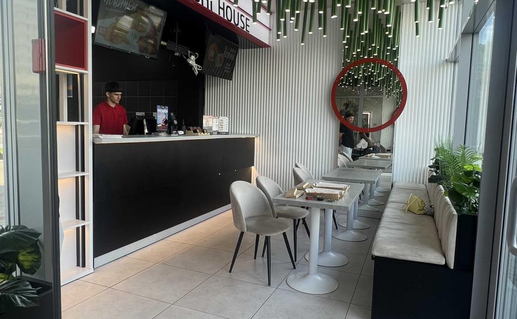 - Небольшое количество посадочных мест, лаконичный интерьер, заведение работает круглосуточно.