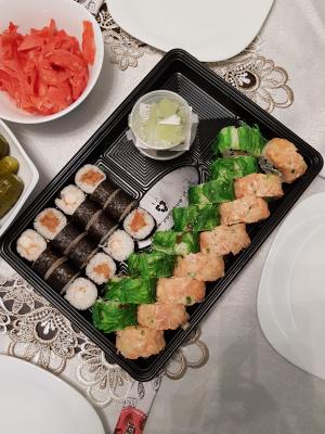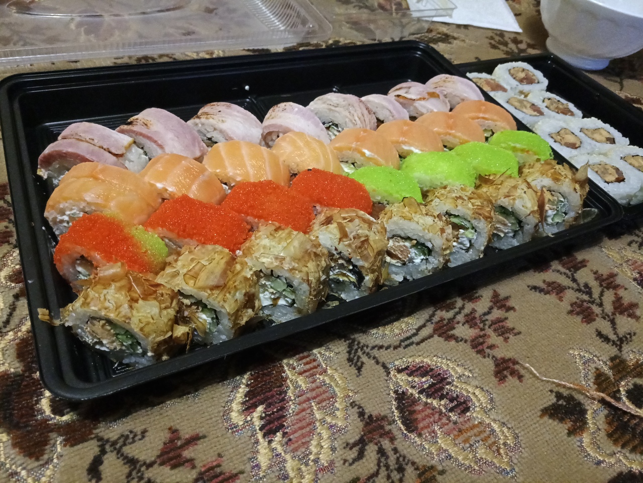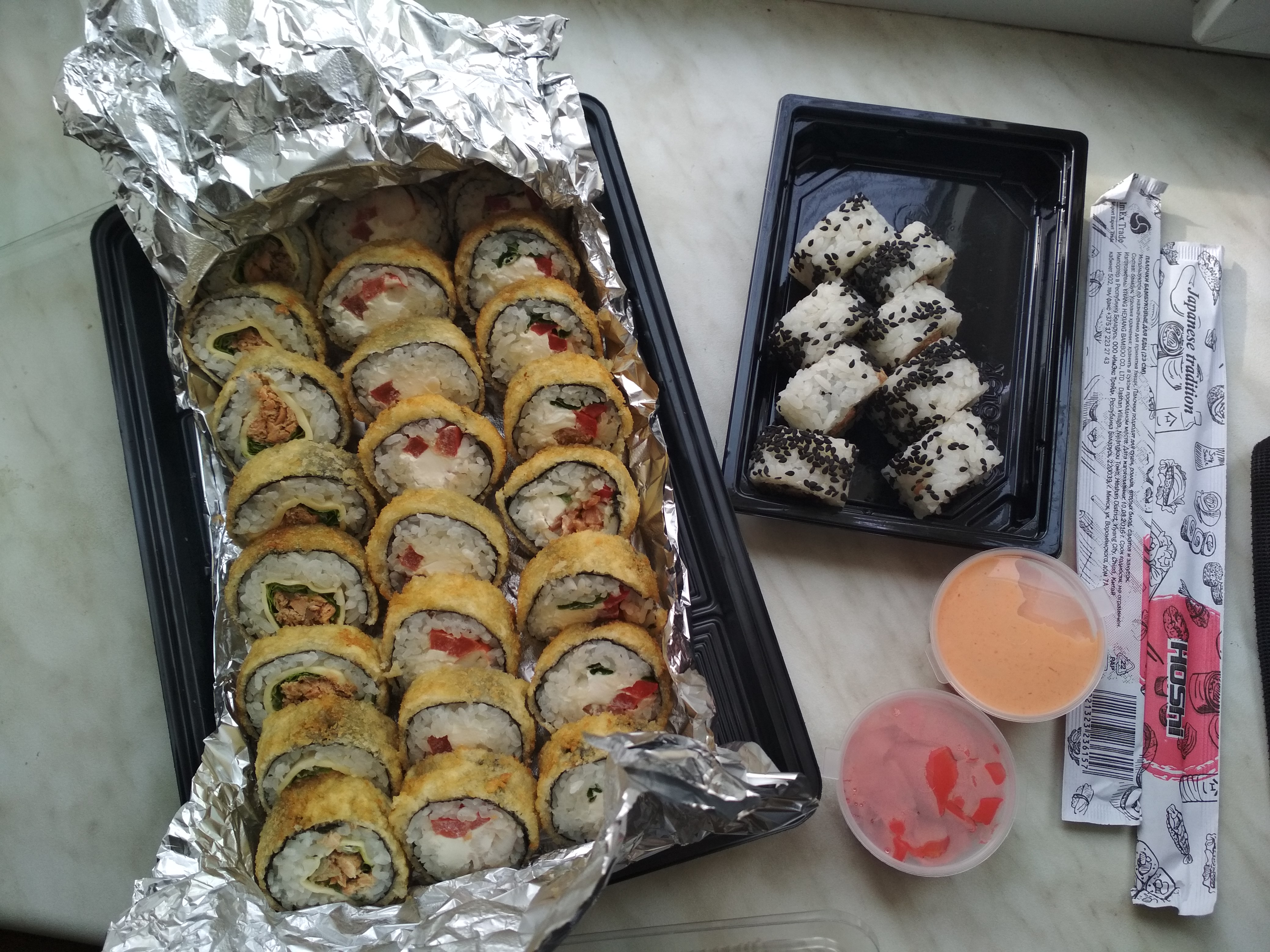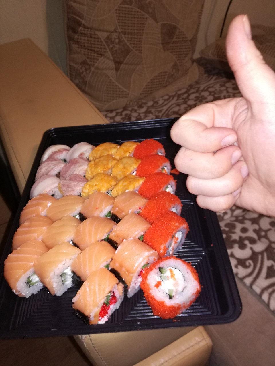Брал на доставку 8го марта - супер, привезли вовремя, ничего плохого сказать не могу. Вкусно, не сухо, рыбы вдоволь. Спасибо, возьму ещё