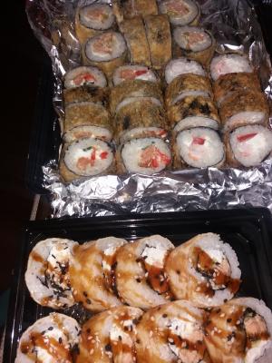 Заказывали горячие роллы и ташики сет. Действительно вкусные суши, начинки хватает, так что смело можете брать