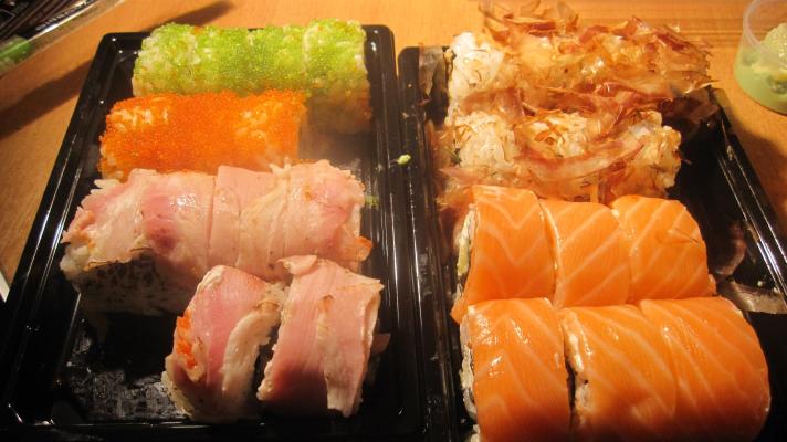 03.10 заказывали "Сан сет" и "Микадо сет" на 4 человек и еле их сьели. Суши очень вкусные, а размер их просто гигантский. Нам все очень понравилось. В подарок дали Пина Коладу и сладкий ролл. Рекомендуем.