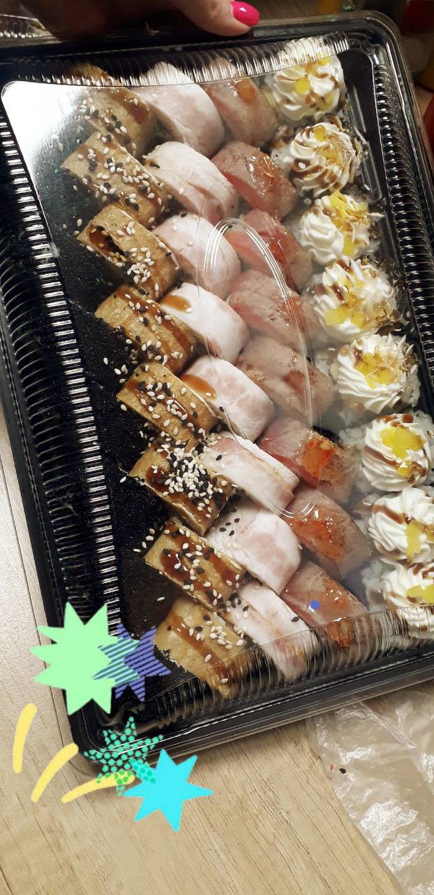 Заказали на обед по сливкам , разные сеты , все классные , вкусные будем ещё брать , спасибо