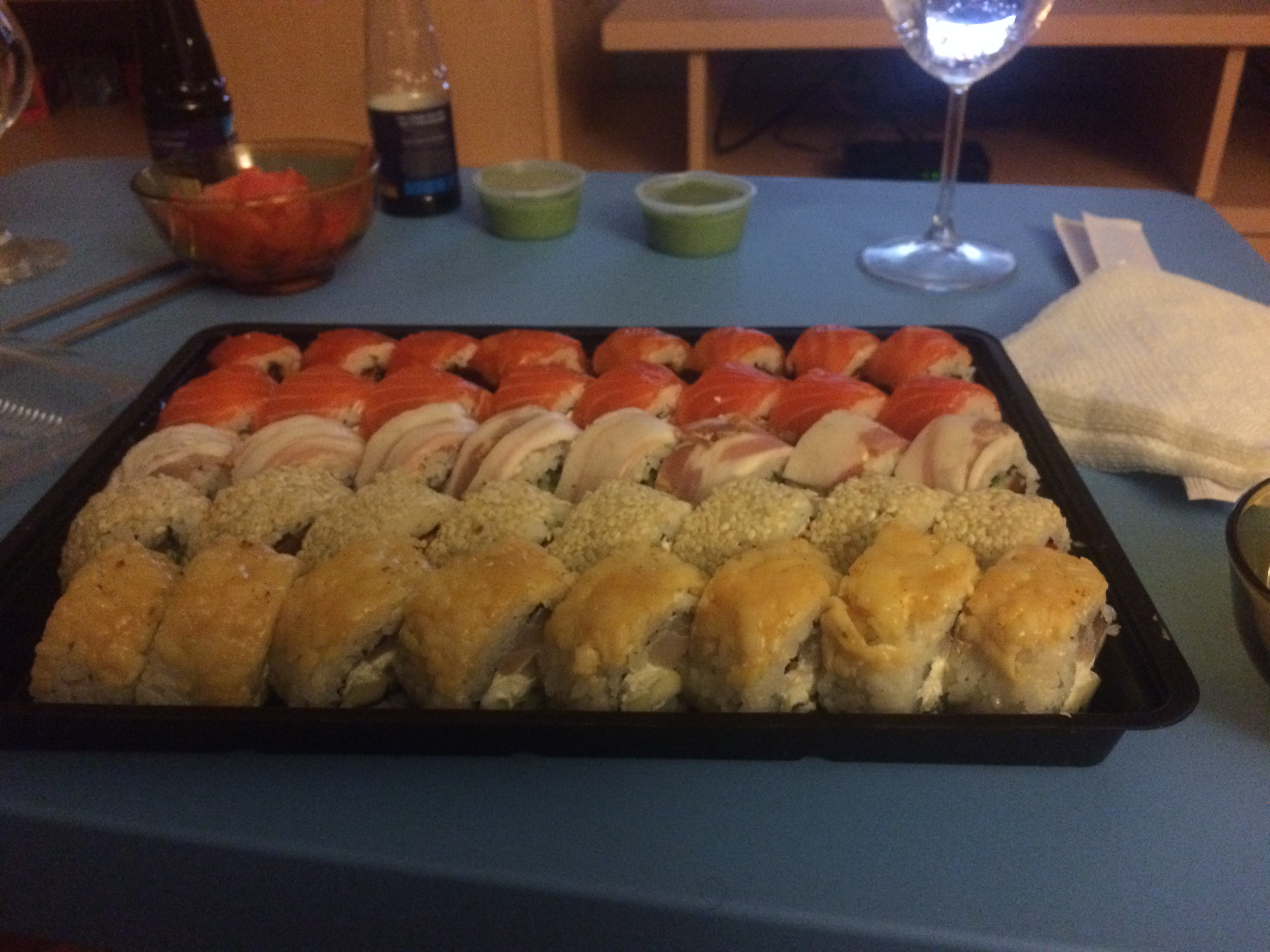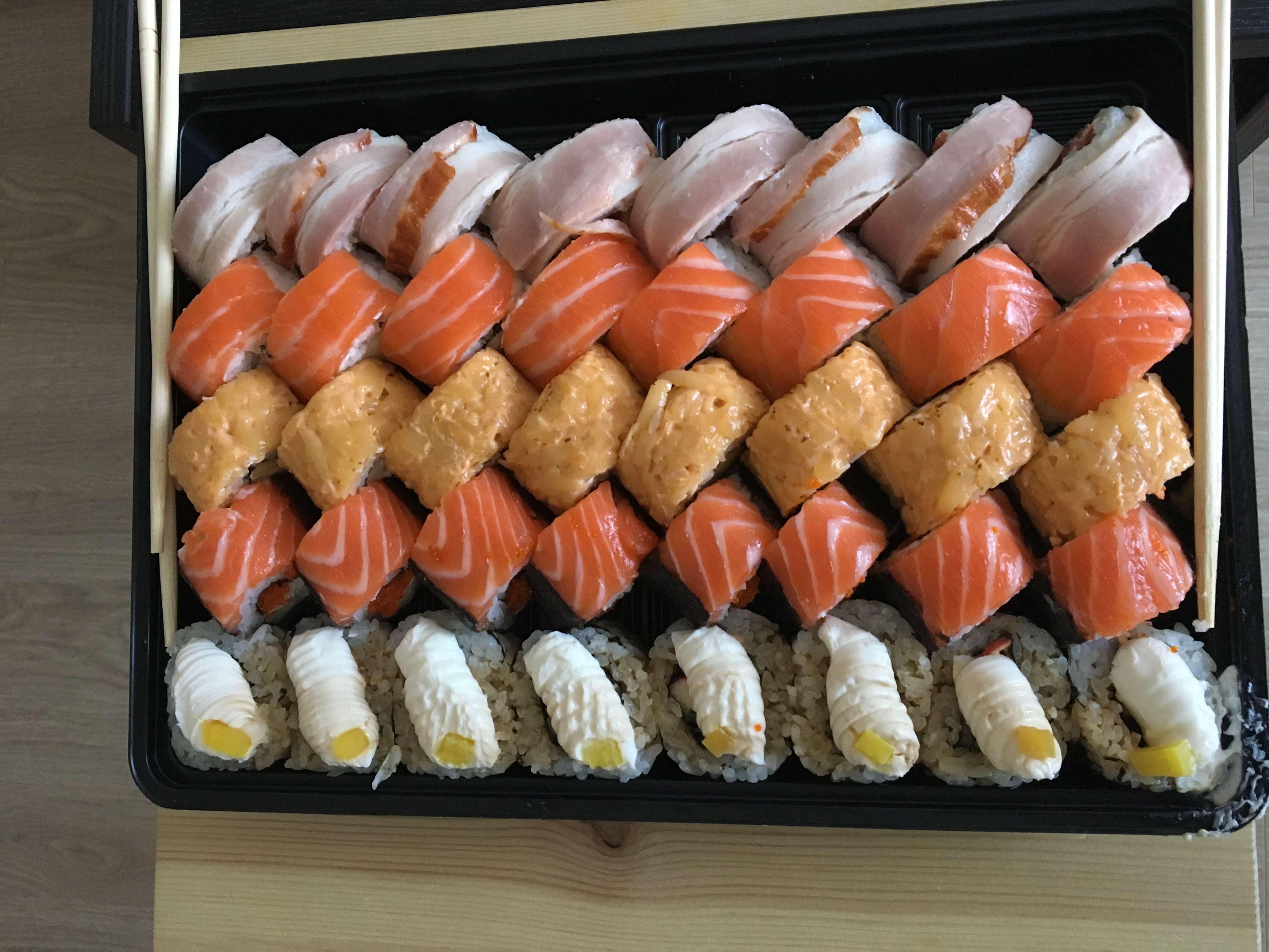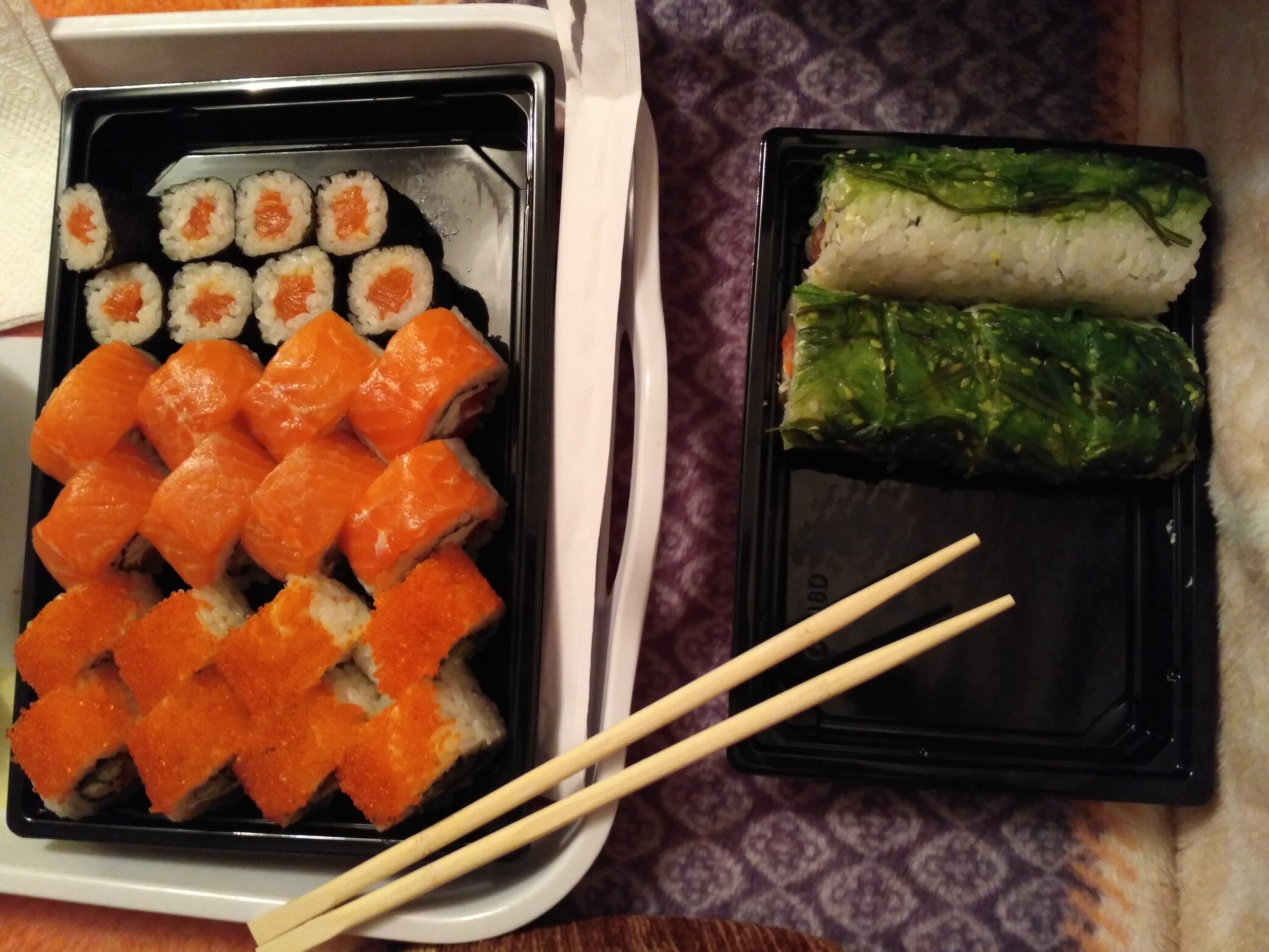 В этот раз заказали сузуши сет, все вкусно, как всегда, но показалось, ролы стали заметно меньше).