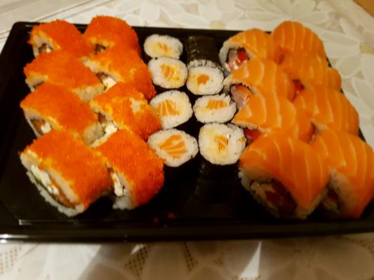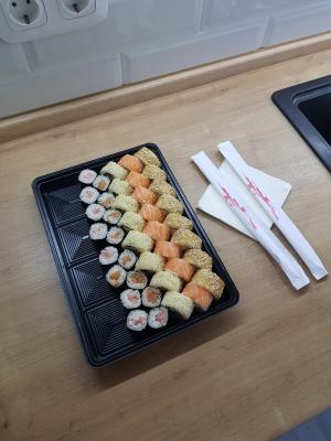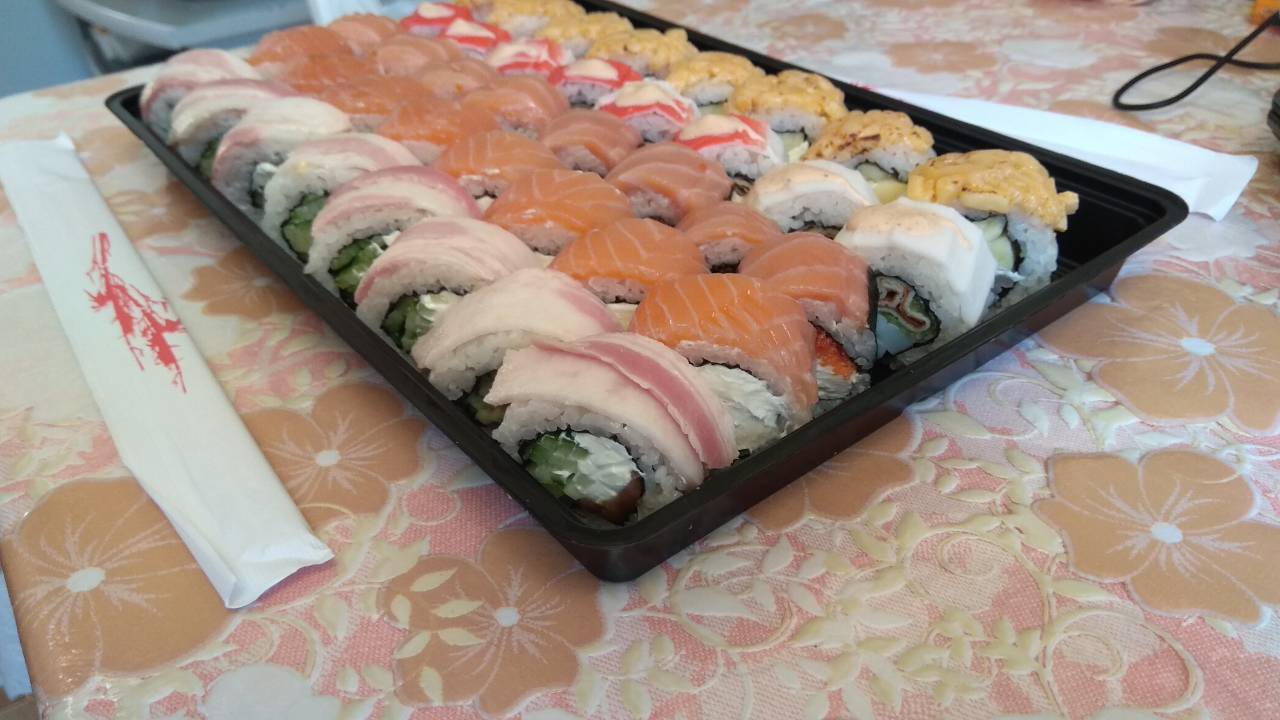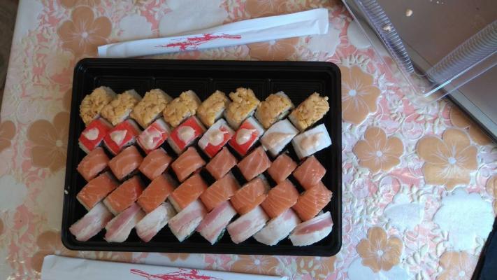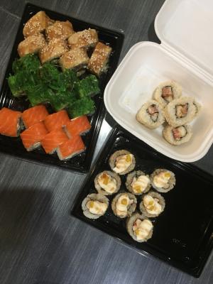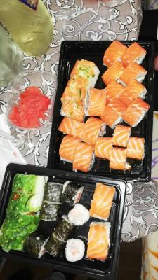 Безумно вкусные суши :-) спасибо вам за то что всегда нас радует всем такими свежими и большими Роллами :-)