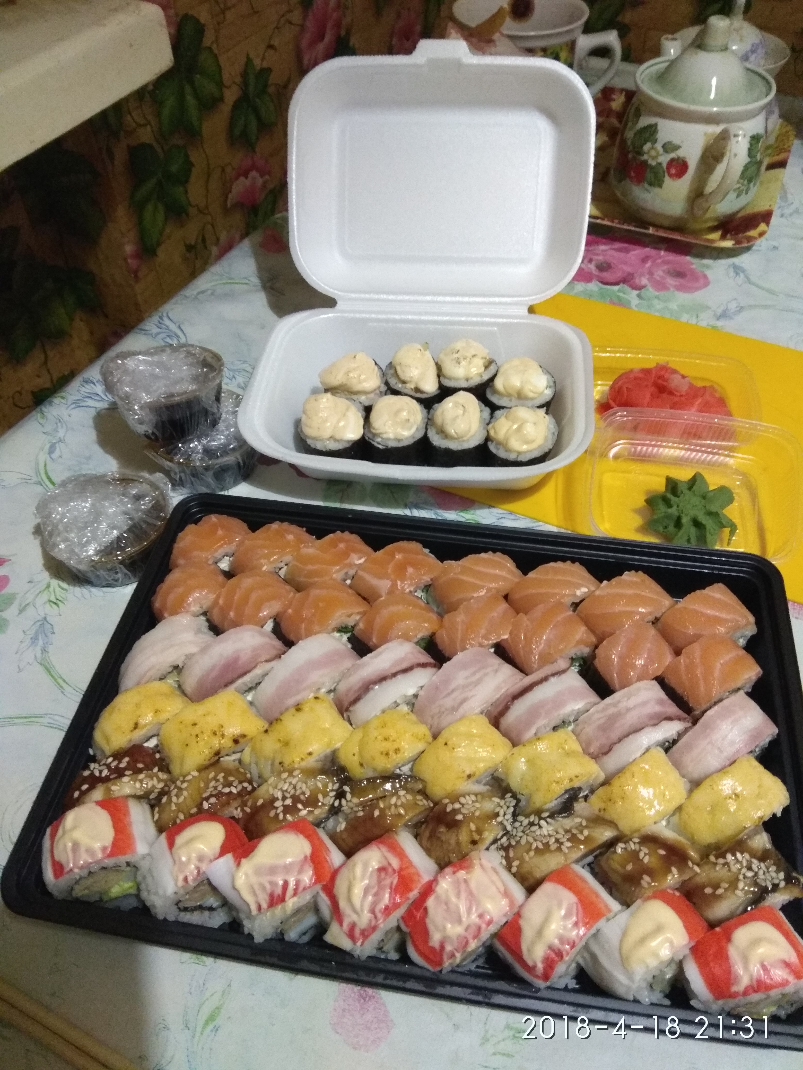 "Переклинило" меня на огромном сете "Сумотори"!) Безумно вкусный и очень яркий на вкус! В прошлый раз заказывали с подругой 22 апреля, когда было сделано это фото)