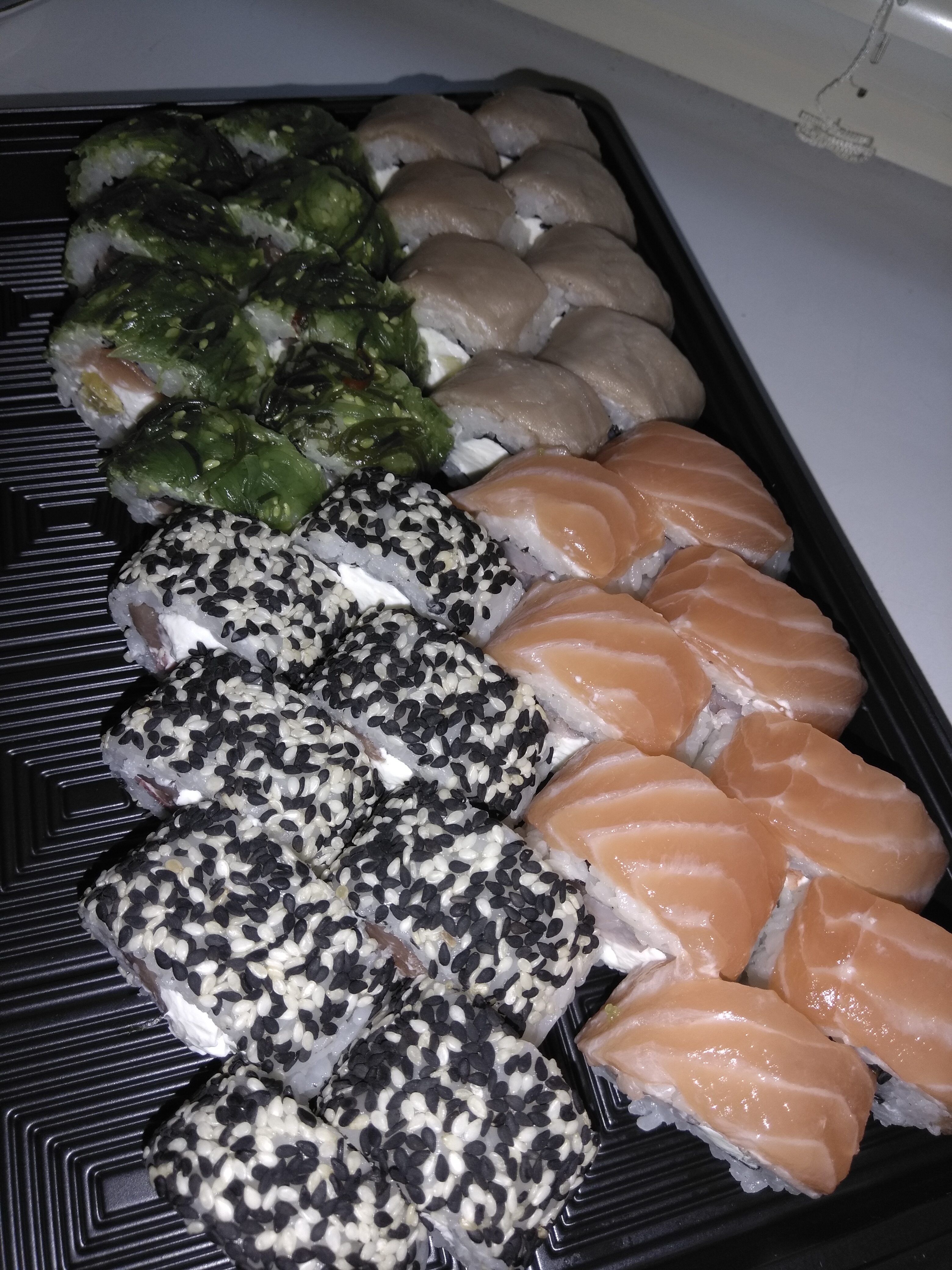 Заказывали впервые и оставлись очень довольны, все было очень вкусно, начинки много, также порадовала быстрая доставка. Заказывали сет Атланта кажется