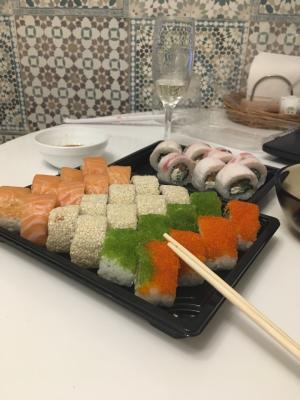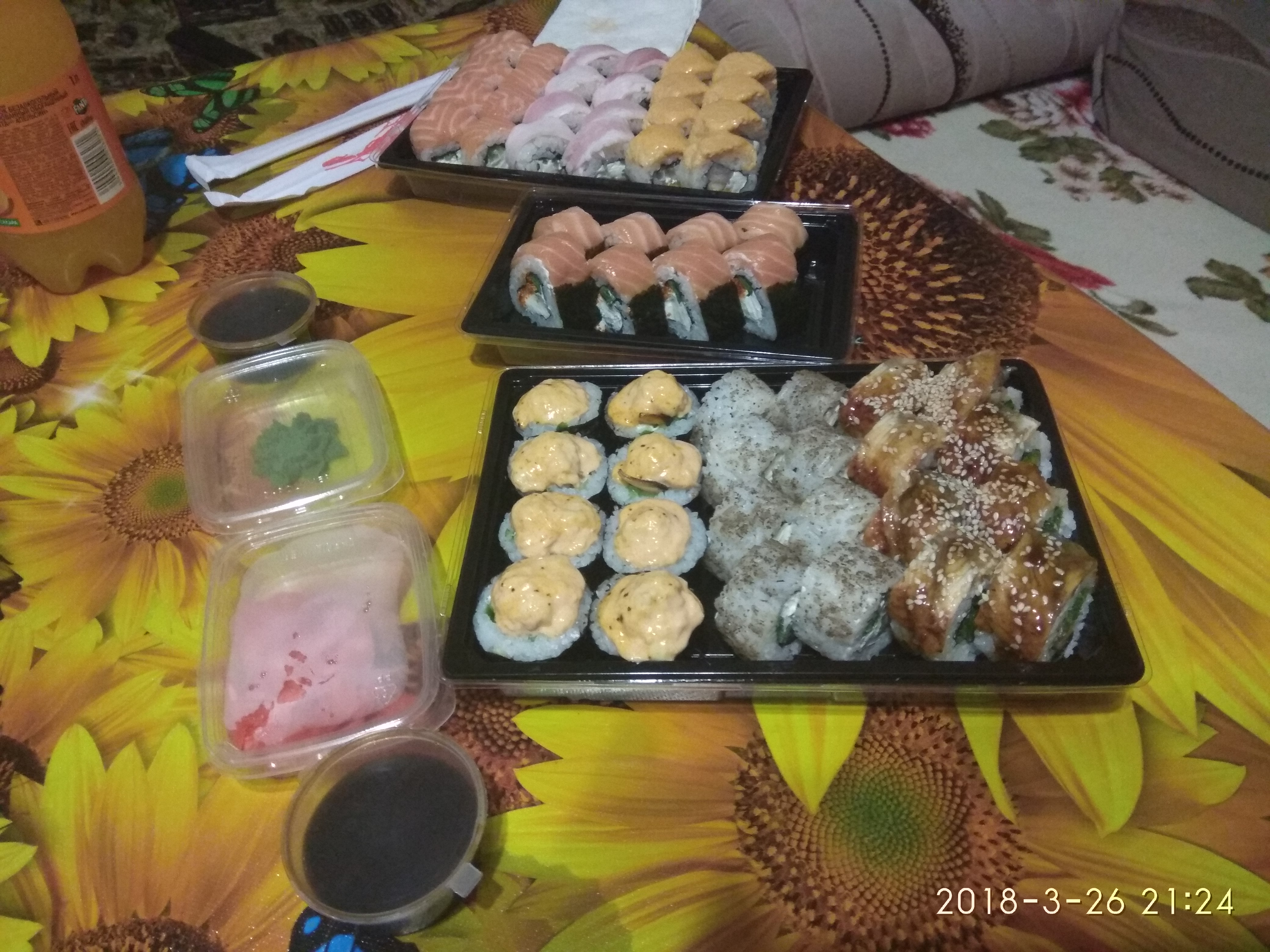 Суши вкусные,свежие,красивые) Брали несколько разных сетов по акции. Все были замечательными! Одни из лучших суши в городе!