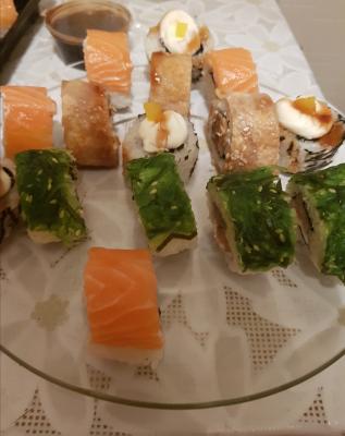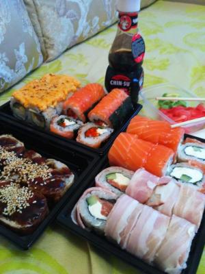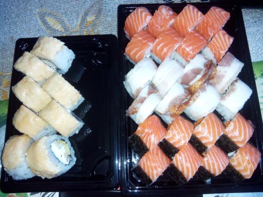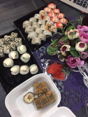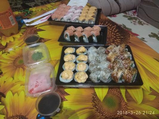 Суши очень вкусные, большие, свежие. Очень рады что у вас появляются новинки. Вы  как всегда на высоте! Так держать. Всем рекомендую!