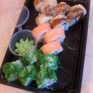 Суши вкусные. Заказываю не в первый раз, пробовали разные сеты. Сегодня «раз два». Доставили во время. Но забыли положить соевый соус!(( Уже попробовала -суши свежие, не разваливаются, но без соуса конечно сухо и совсем не то. Обещали довезти за 1,5 часа. Жду. Пожалуйста, будьте внимательнее!