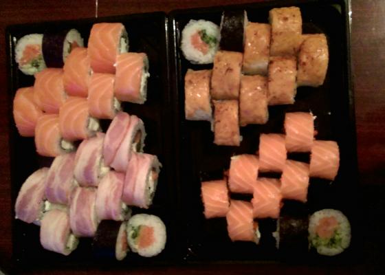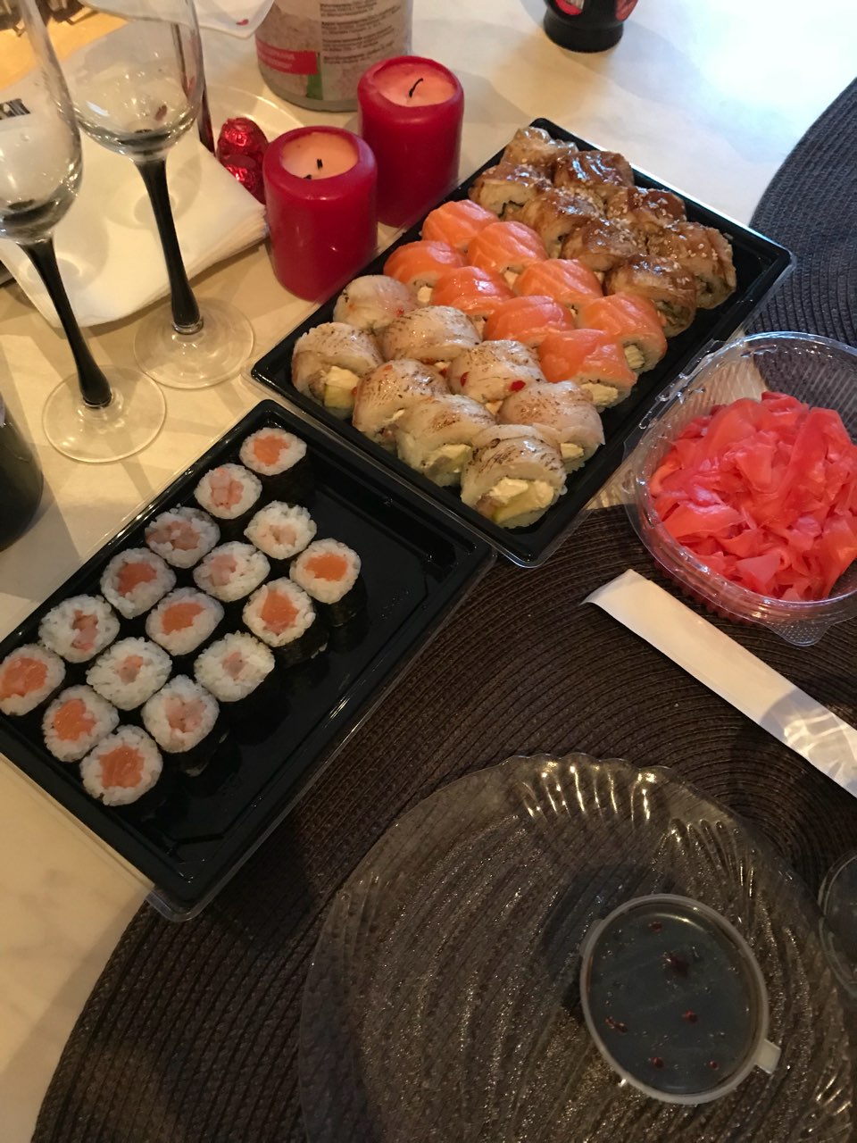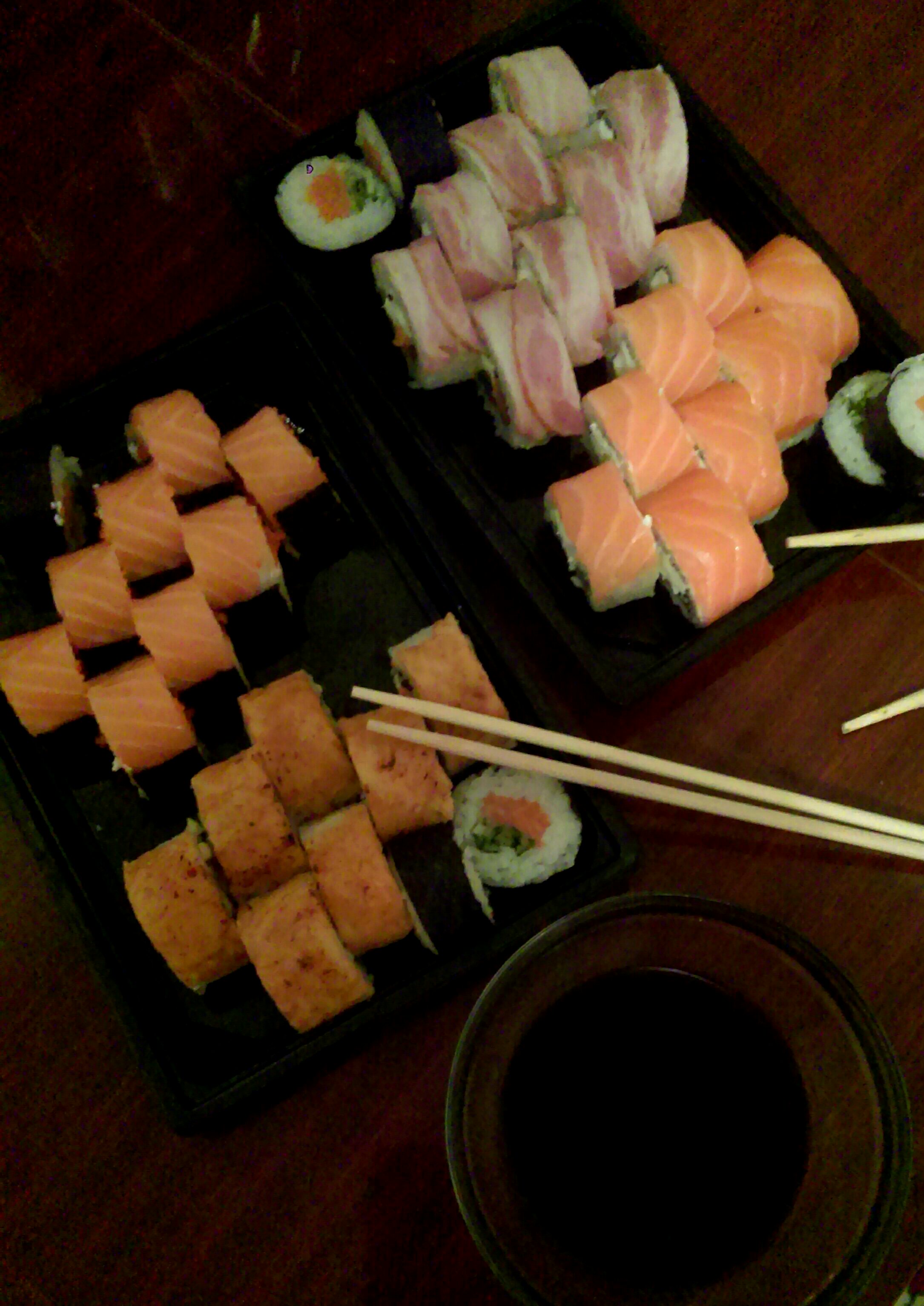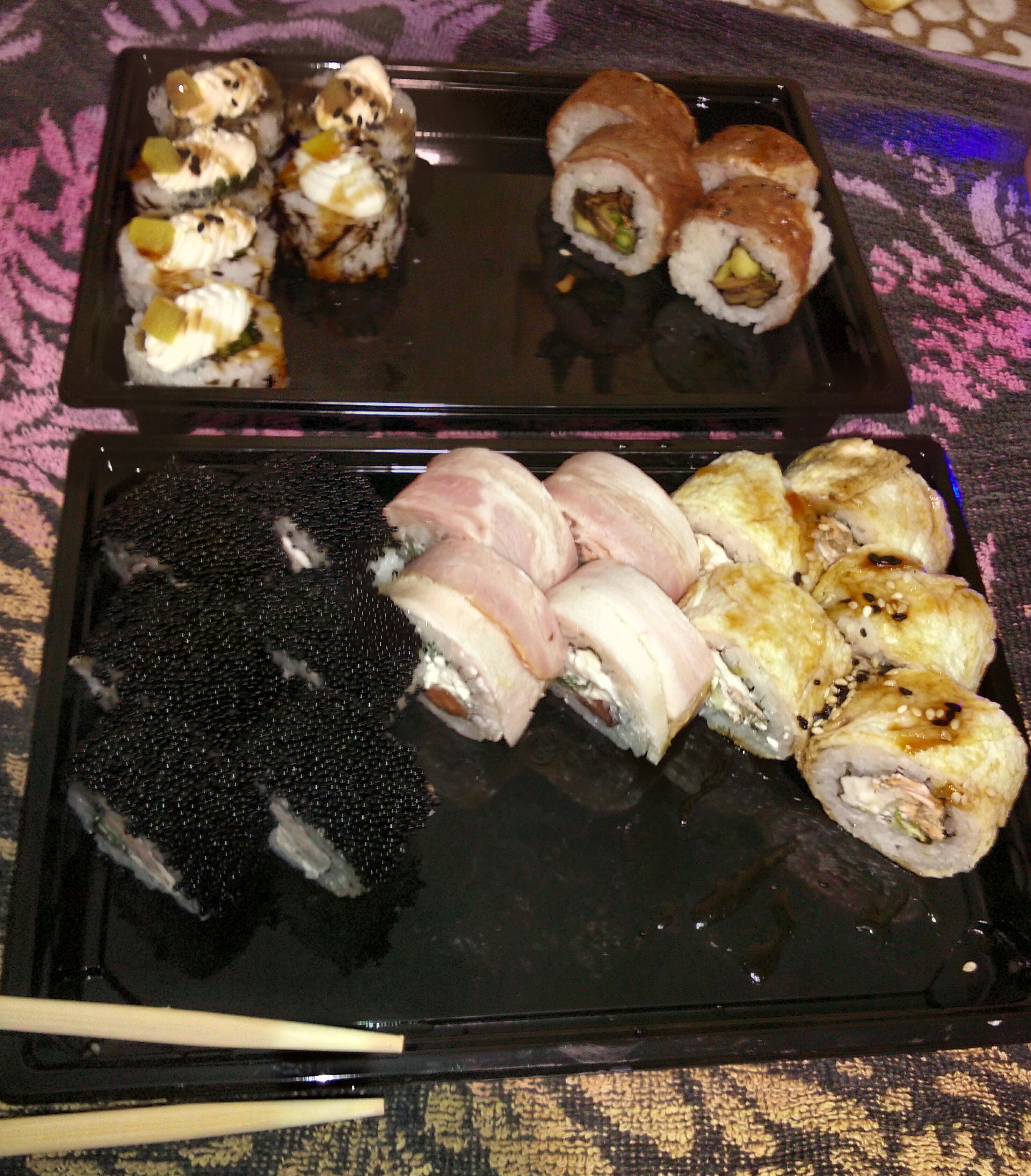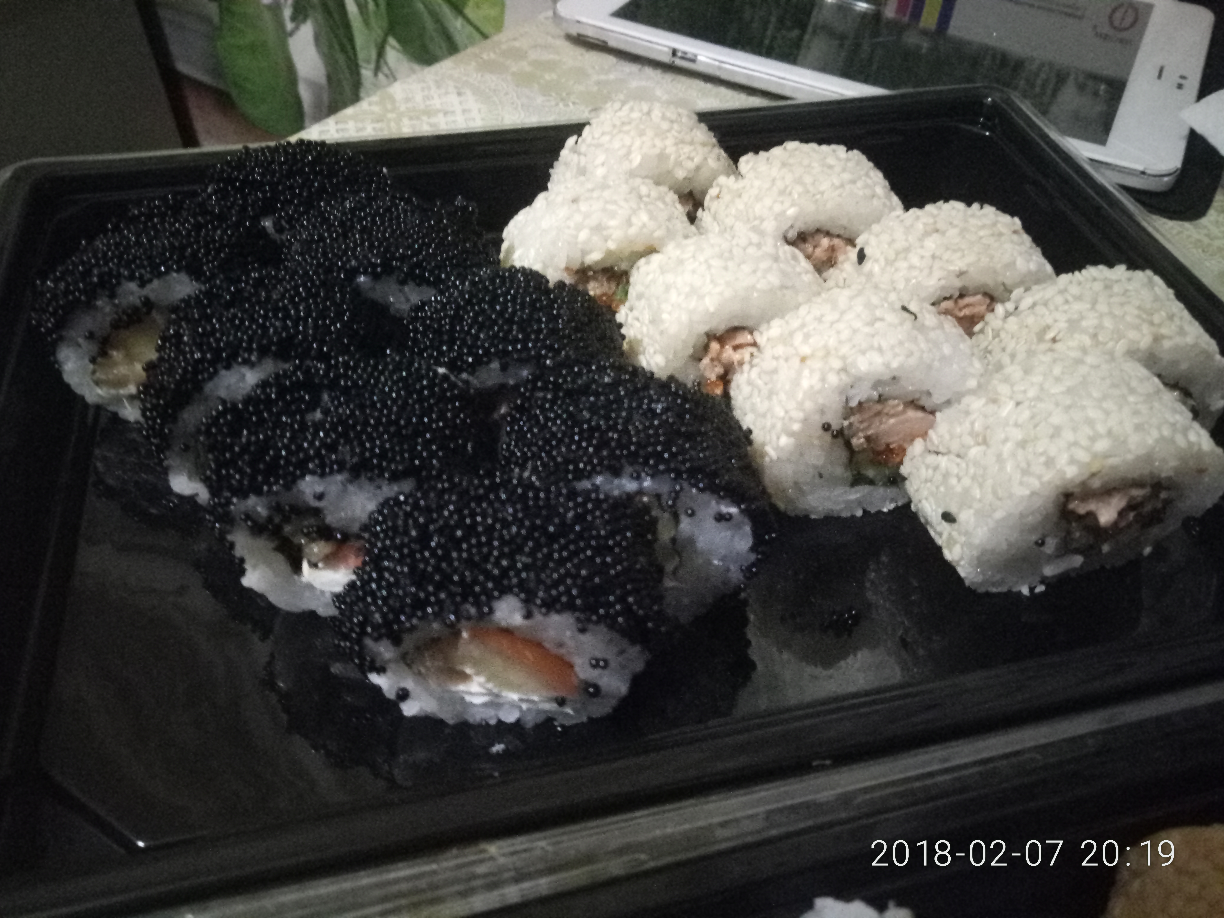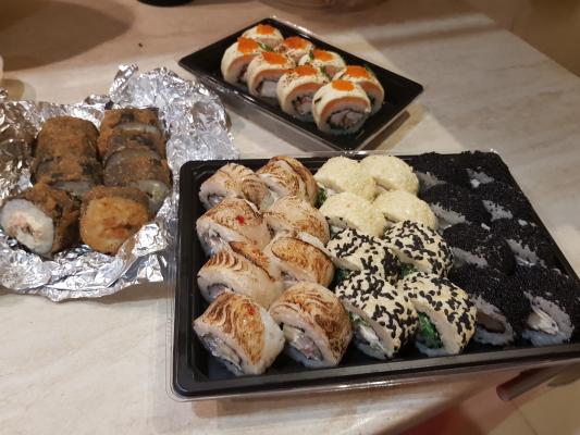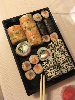 Суши очень вкусные. Еще порадовало, что даже после 22.00 можно сделать заказ. А то мы, часто бывает, только ближе к такому времени понимаем, что хотим что-то пожевать на ночь)